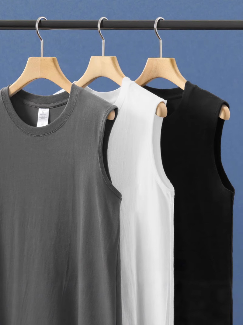Главная страница > Мужской дышащий жилет из чистого хлопка в стиле ретро, однотонный универсальный корейский вариант, футболка без рукавов, майка, топ, мужской жилет, футболка