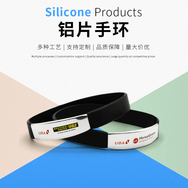 Пользовательские металлические листы силиконовые браслеты для школы юбилейный маленький подарок с печатью логотипа браслет с мостом алюминиевый браслет