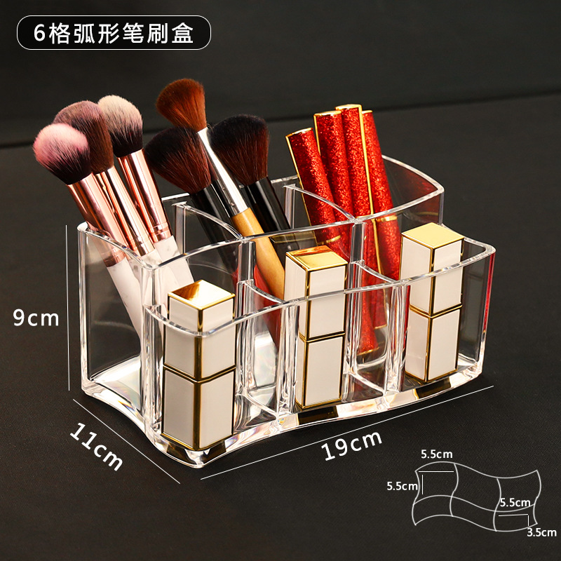 Большой изогнутый держатель для инструментов для макияжа с 6 отделениями, толстый стиль.