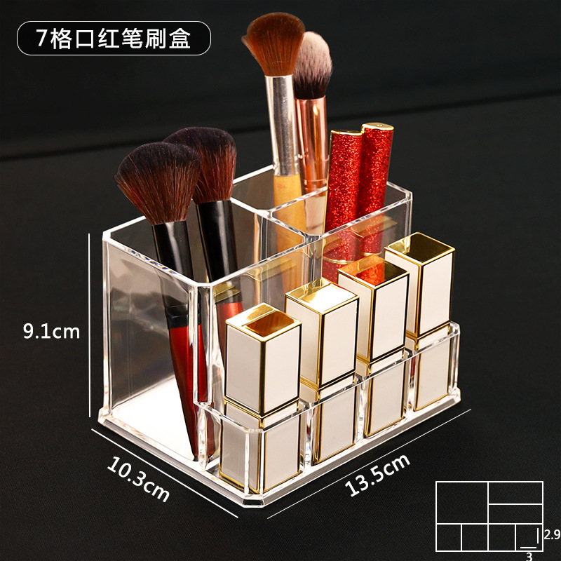 Прозрачная коробка для кистей для макияжа с семью отделениями для губной помады, толстый стиль