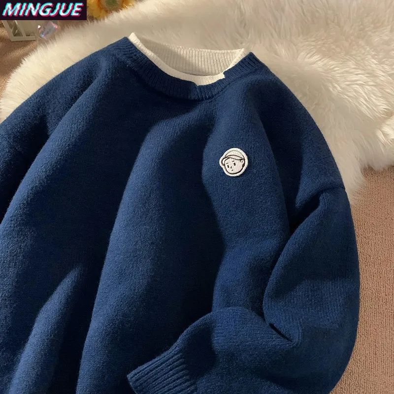 Темно-синий Исландия Fair Island Свитер оверсайз ленивый стиль Мужская зимняя американская Ретро Вязаная куртка для пар