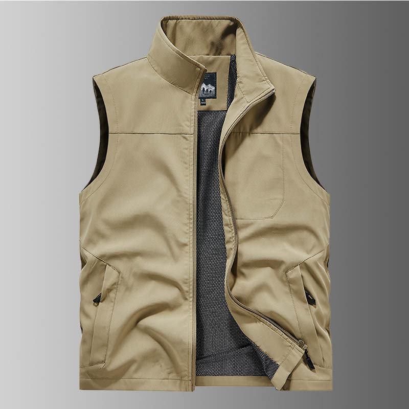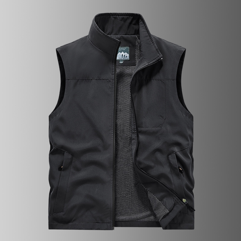 Главная страница > Весенне-осенний новый мужской однотонный воротник-стойка с несколькими карманами, функциональный уличный ветрозащитный водонепроницаемый повседневный спортивный свободный жилет
