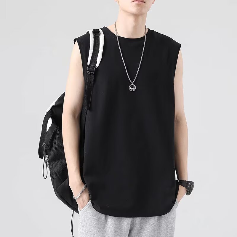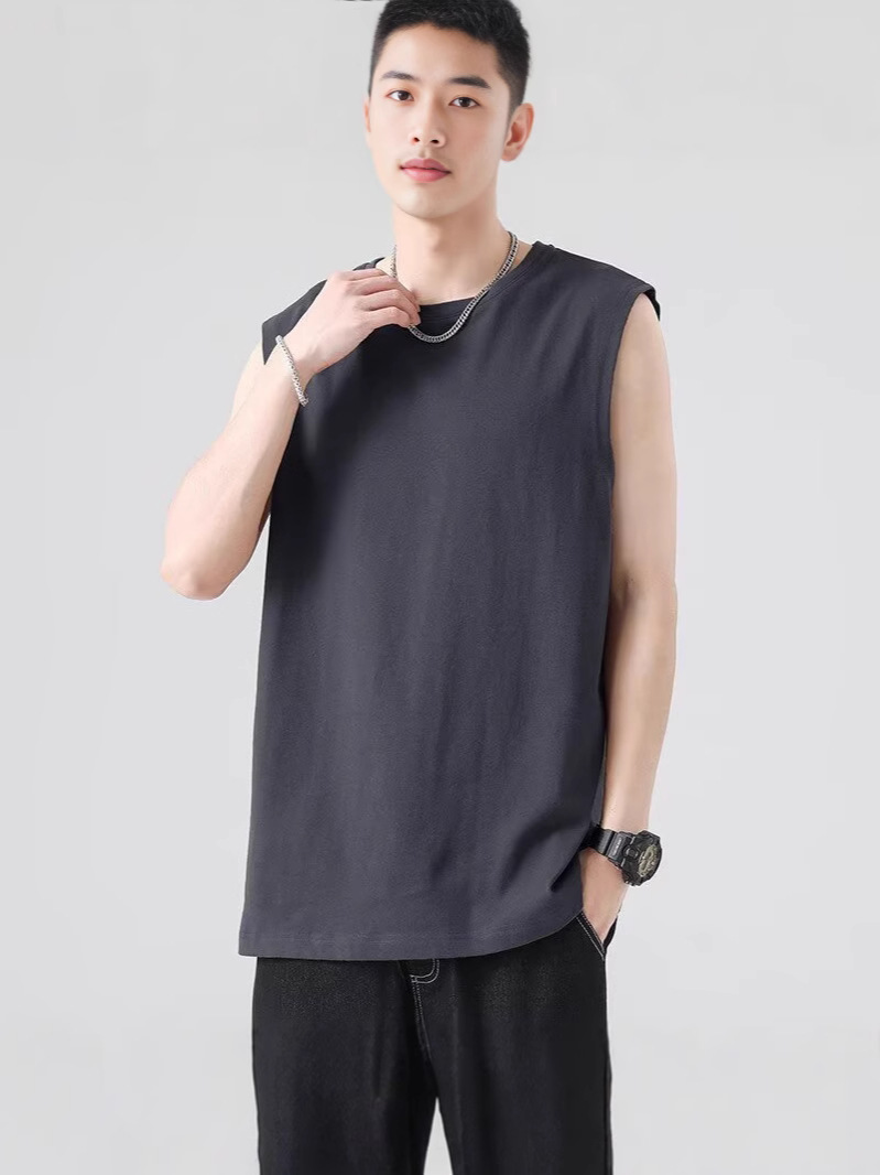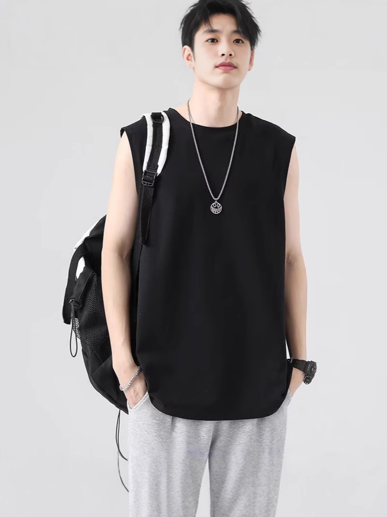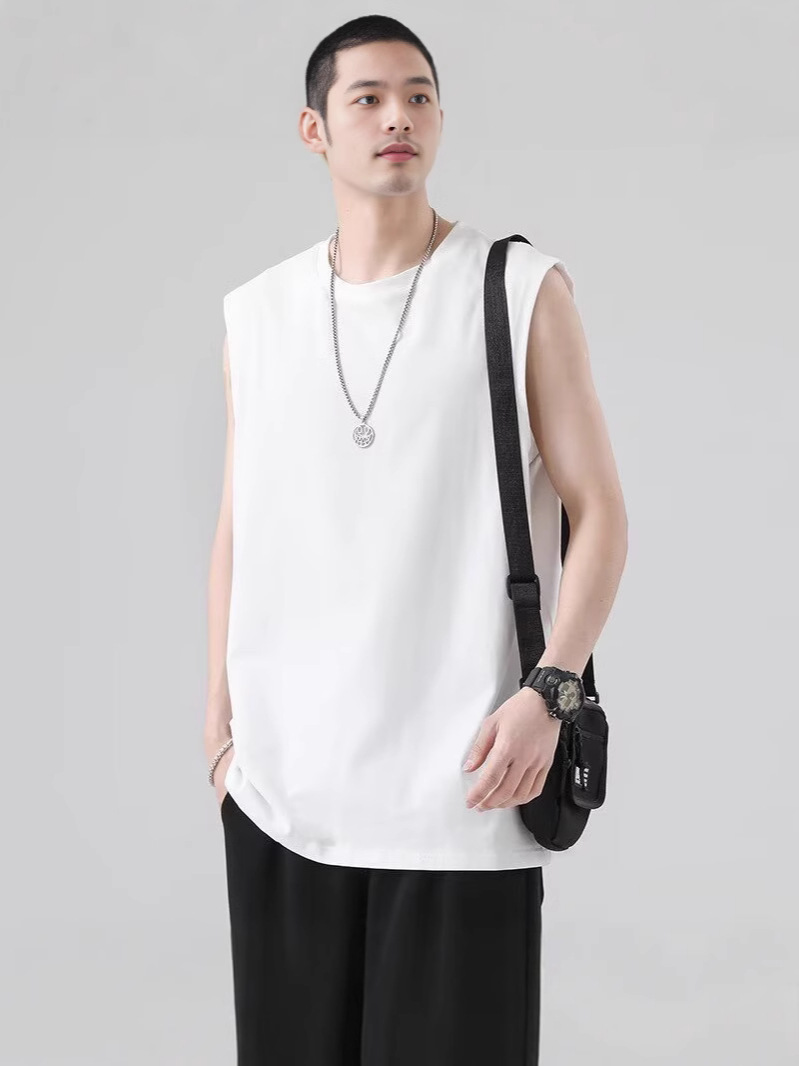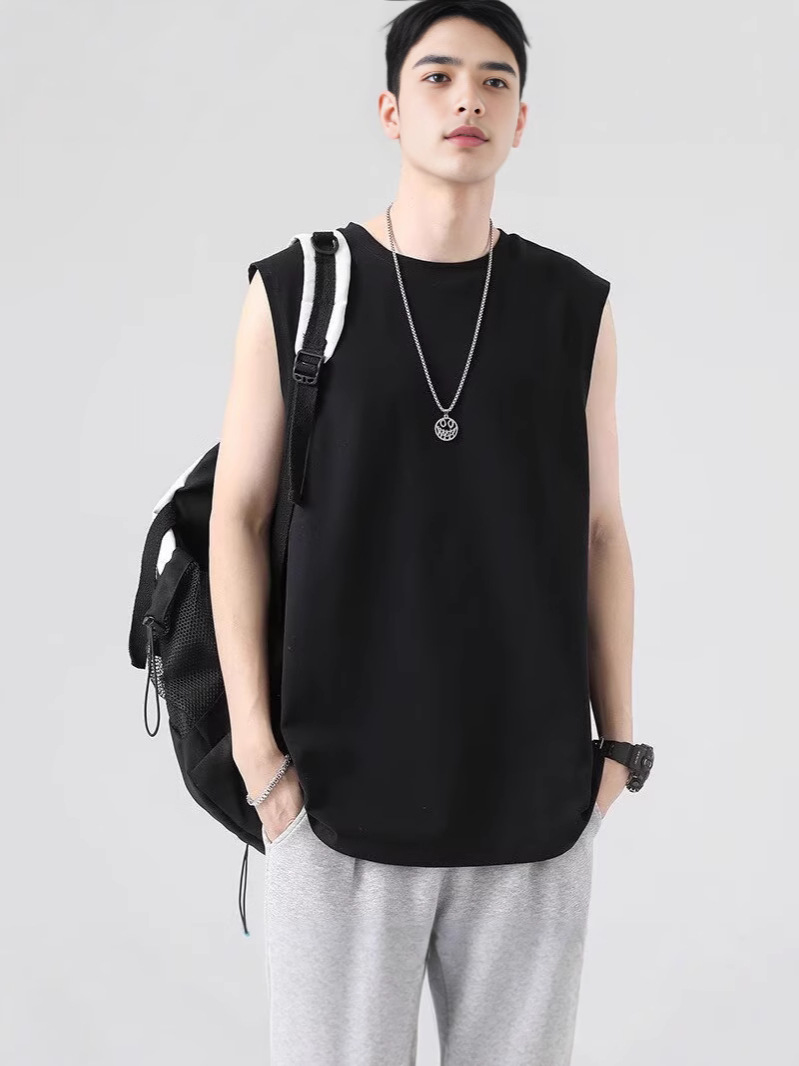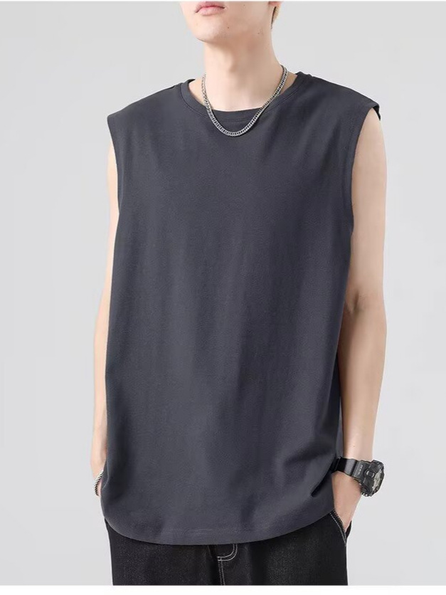 Главная страница > Оптовая продажа летнего мужского широкого спортивного жилета, футболки, однотонной нижней рубашки с круглым вырезом от производителя