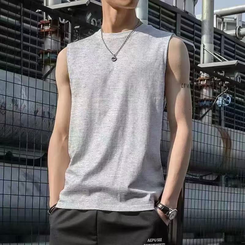 Оптовая продажа летнего мужского широкого спортивного жилета, футболки, однотонной нижней рубашки с круглым вырезом от производителя
