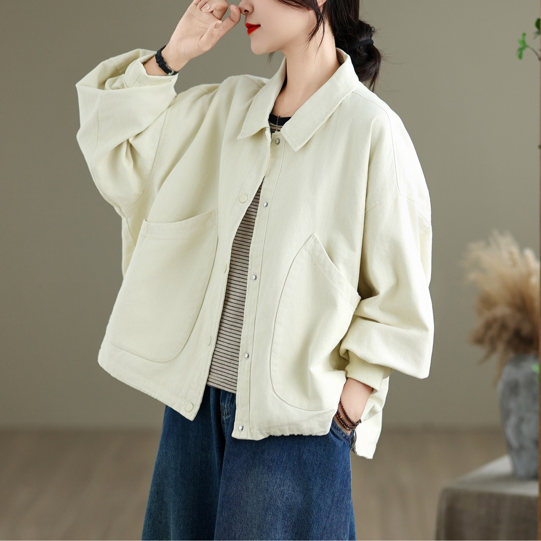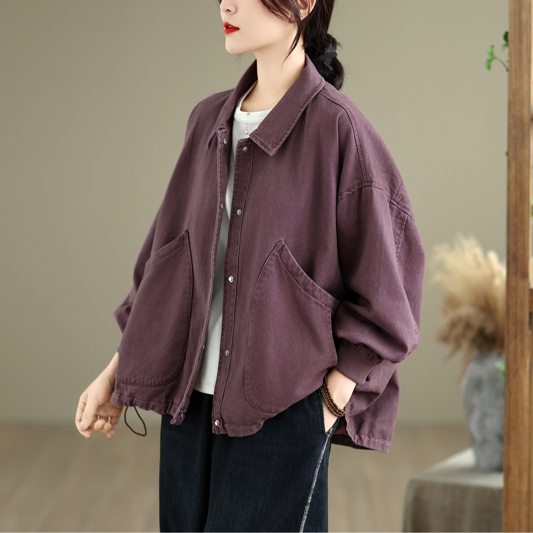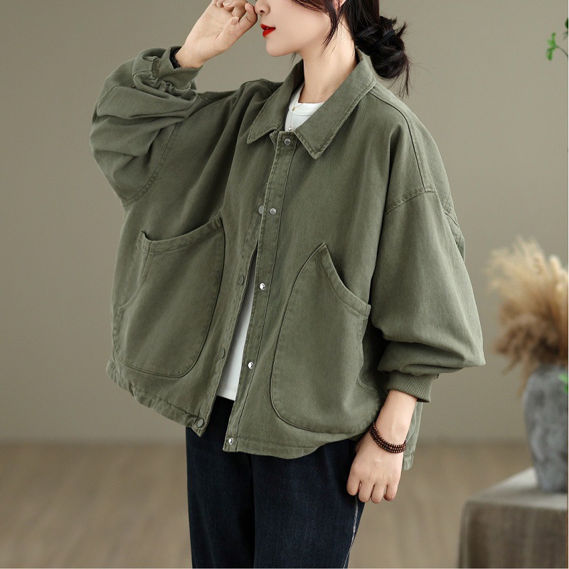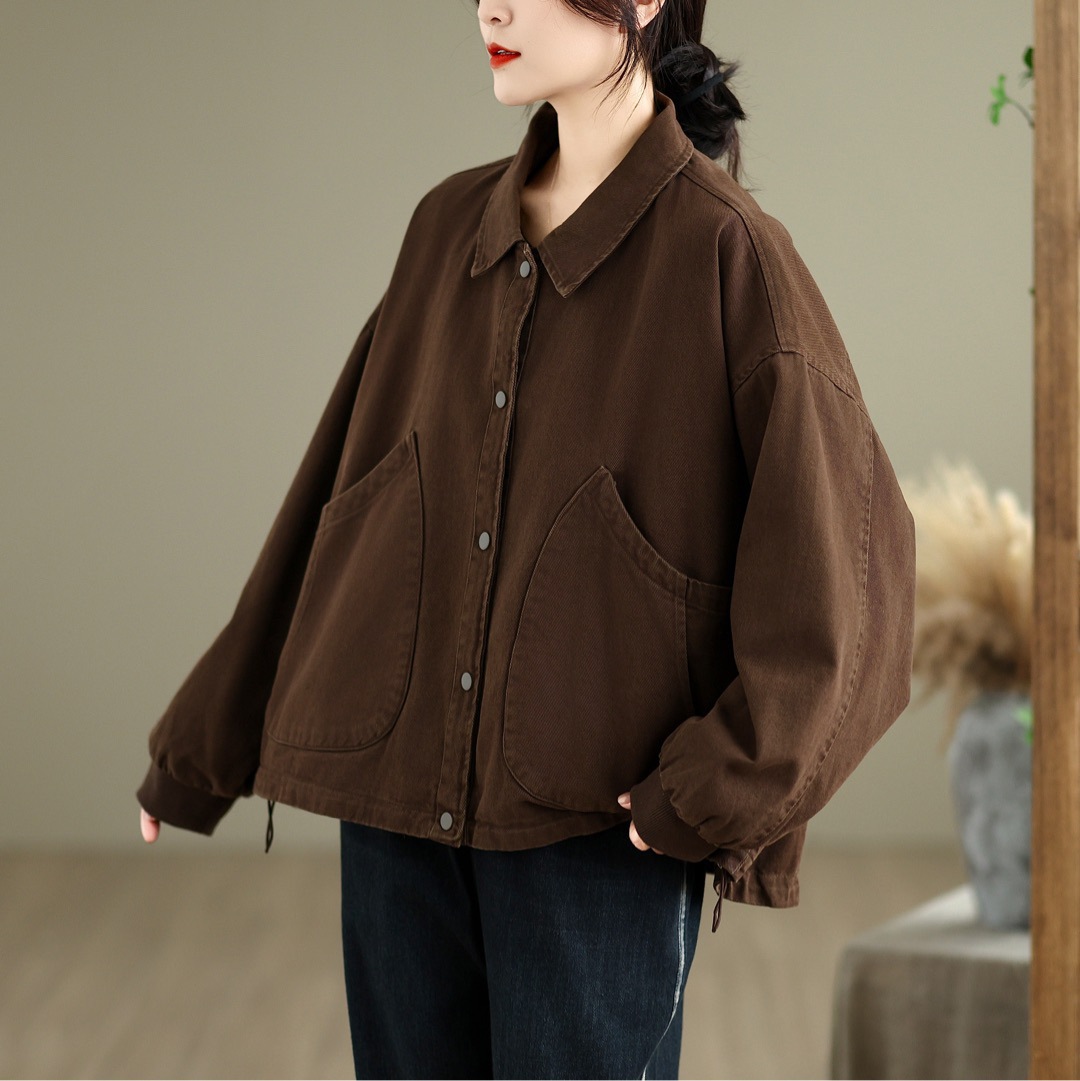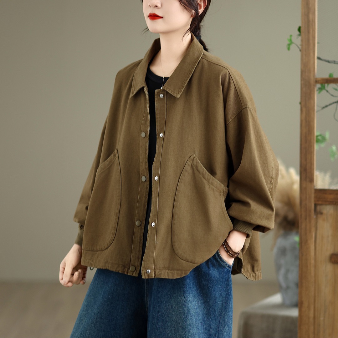 Главная страница > 秋季新款个性口袋百搭纯色外套女宽松翻领纽扣休闲夹克上衣批发