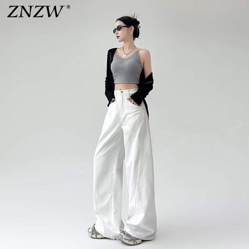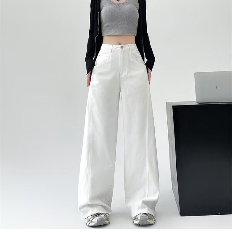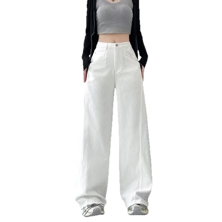 Главная страница > Белые широкие женские джинсы больших размеров, весенне-летний стиль, миниатюрные, свободные, утягивающие, элитные, прямые брюки в пол.
