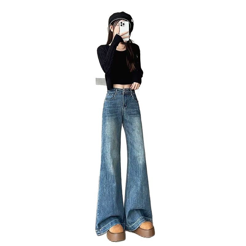 Главная страница > Джинсы в форме груши Женская весна 2025 новая корейская версия с высокой талией эластичная тонкая, широкие брюки расклешенные