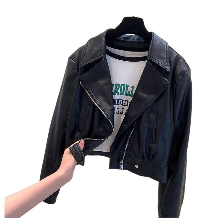 Главная страница > Короткая кожаная куртка женская весенняя и осенняя мода тонкая кожаная одежда темперамент лацканный воротник