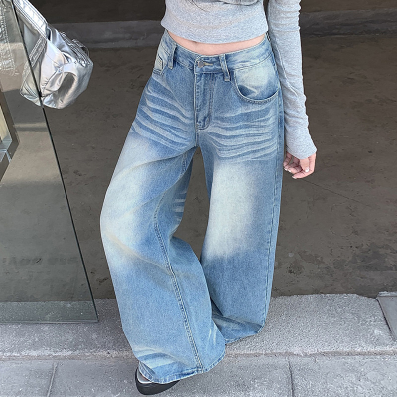 Главная страница > Женские рваные джинсы, потертые и выцветшие, прямые брюки больших размеров, свободные, в пол, с высокой талией, широкие длинные брюки.