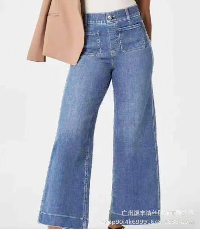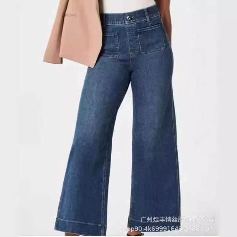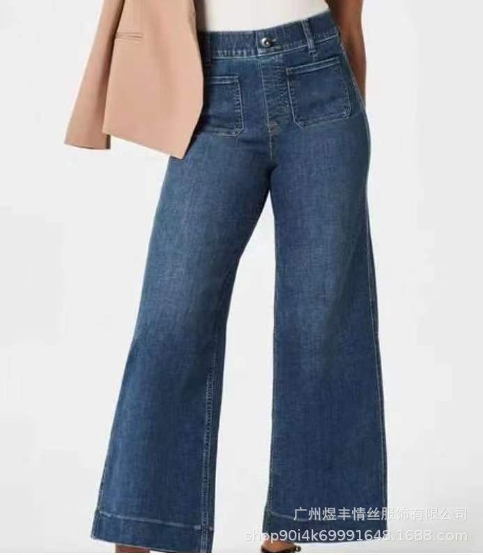 Главная страница > Amazon трансграничный 2024 летний девятиуговый широкий размер женские джинсовые брюки с теневой синей стиркой