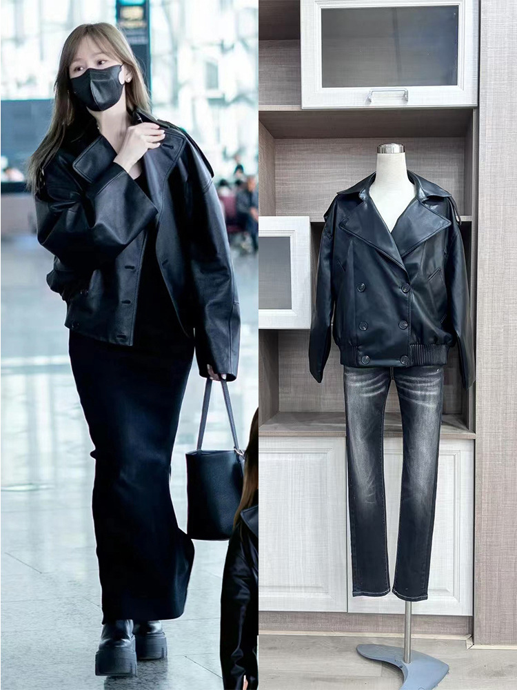В наличии женская куртка из искусственной кожи в стиле Yangmi, короткий плащ из искусственной кожи в стиле старых денег с большими лацканами.
