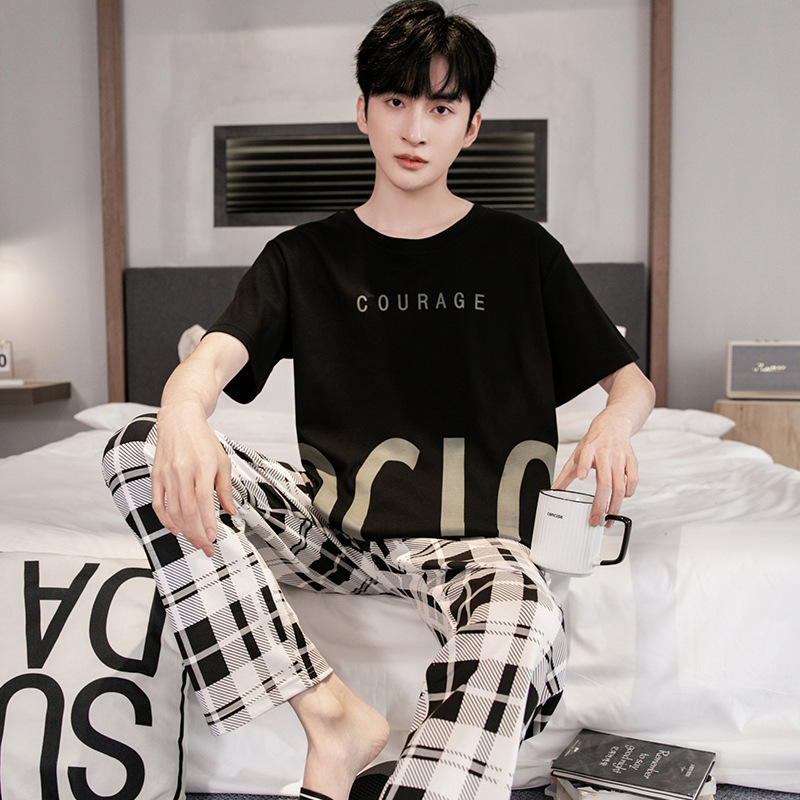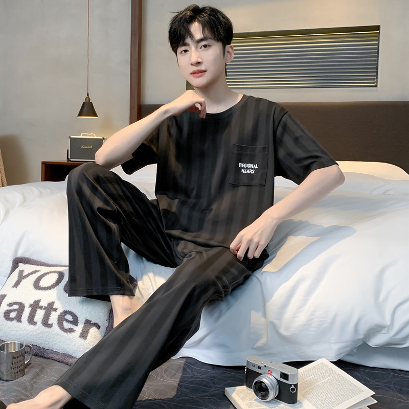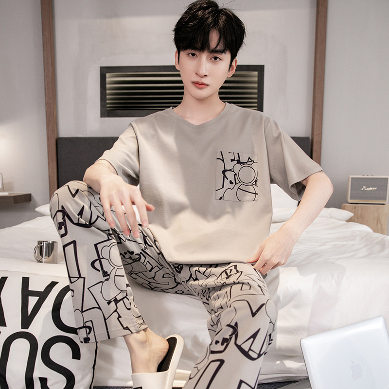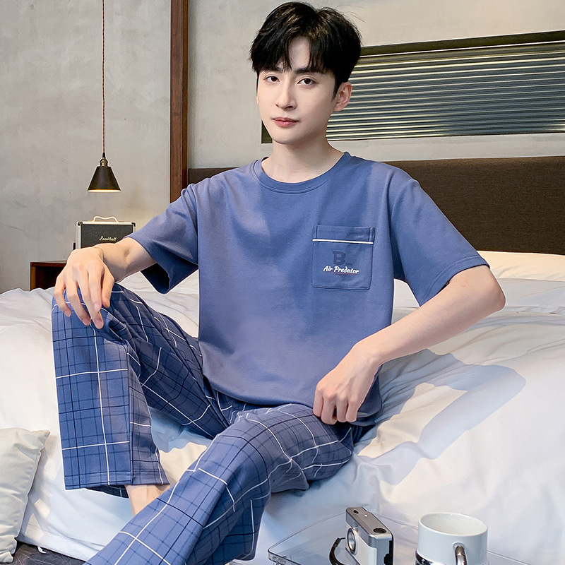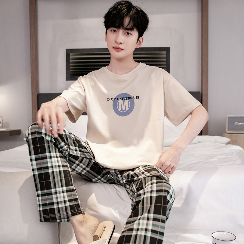 Главная страница > 100% хлопчатобумажная пижама мужская хлопчатобумажная летняя тонкая брюки с короткими рукавами, хлопчатобумажная круглая шезонка