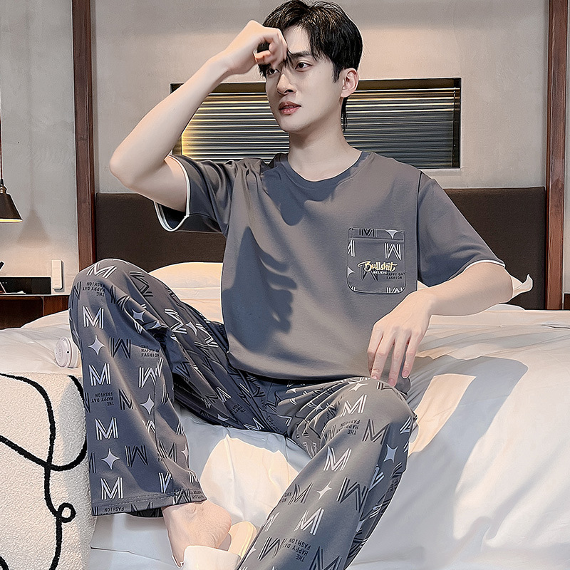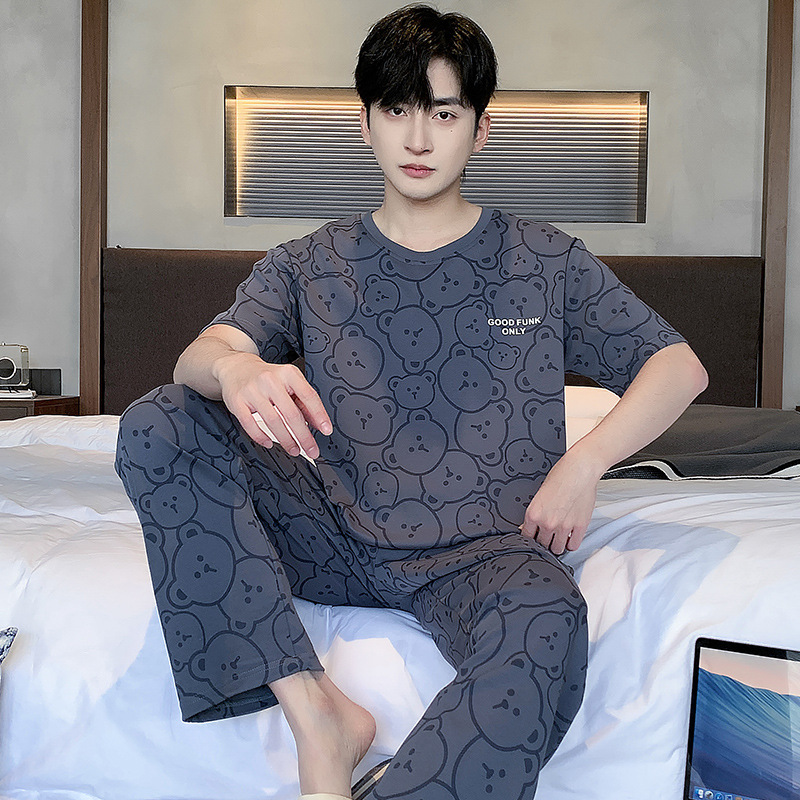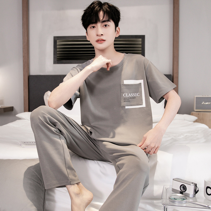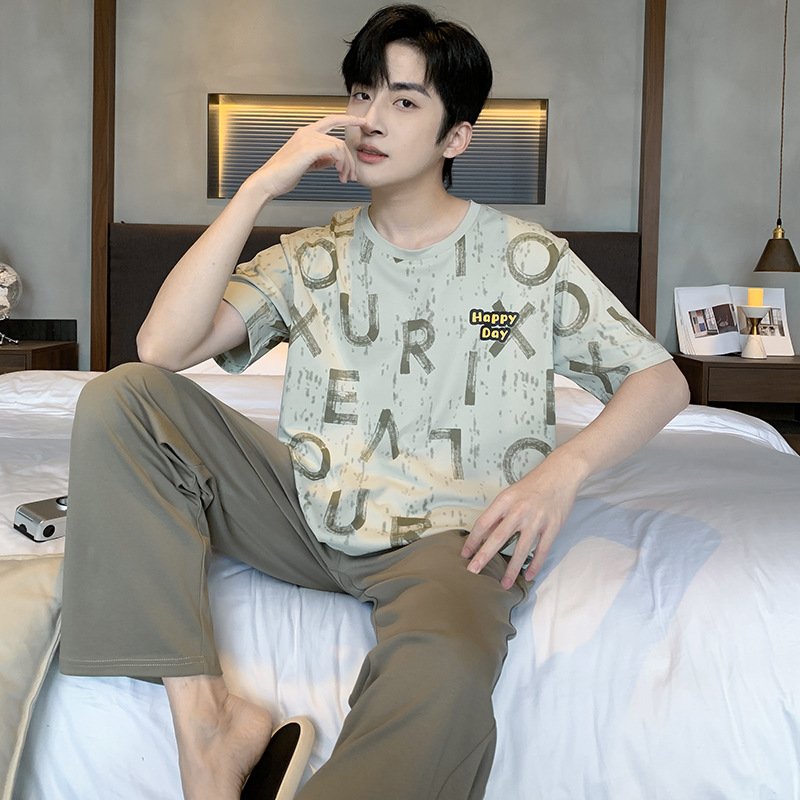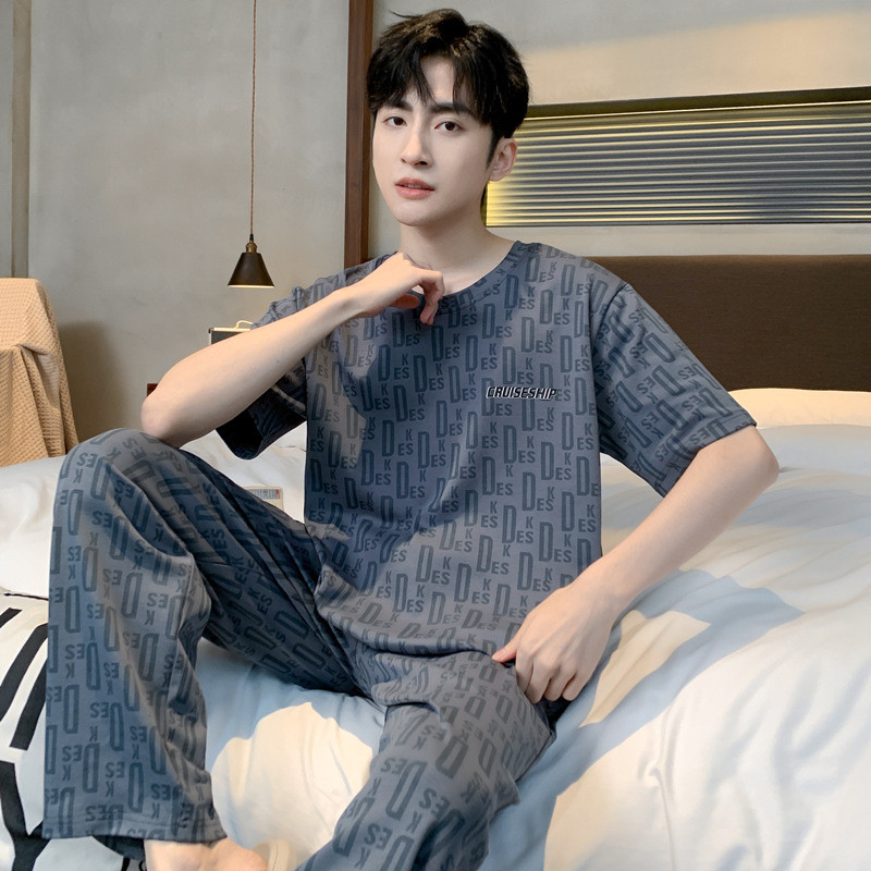 Главная страница > 100% хлопчатобумажная пижама мужская хлопчатобумажная летняя тонкая брюки с короткими рукавами, хлопчатобумажная круглая шезонка