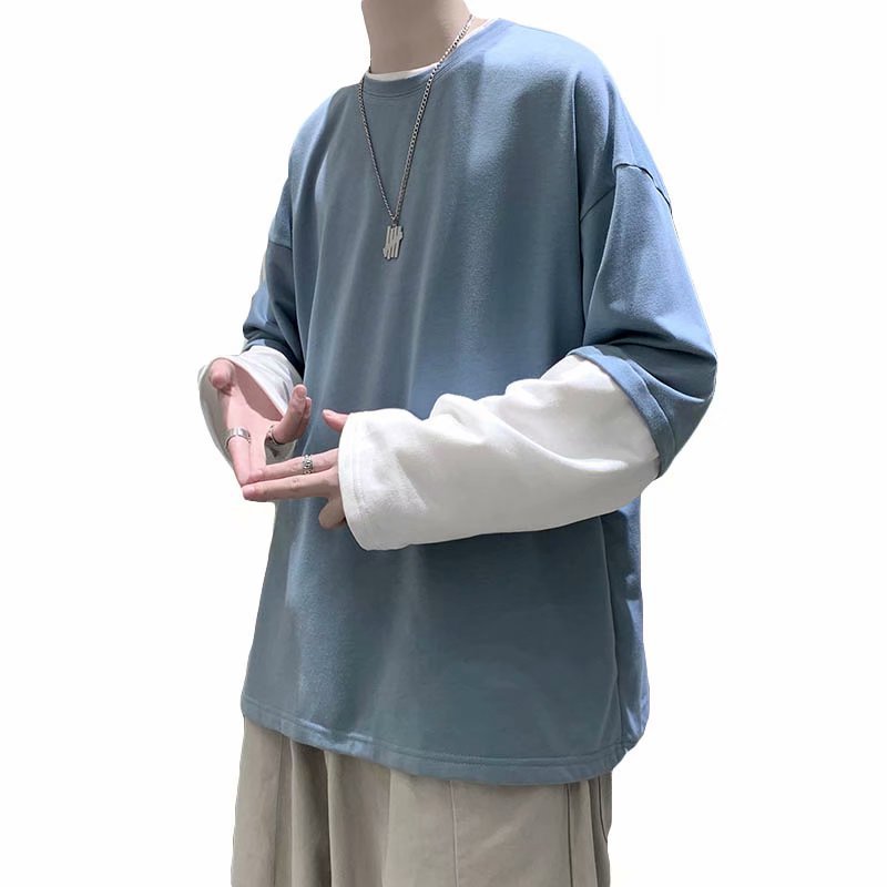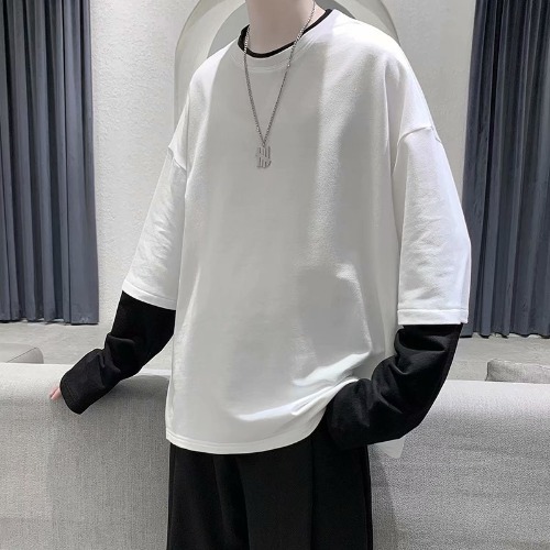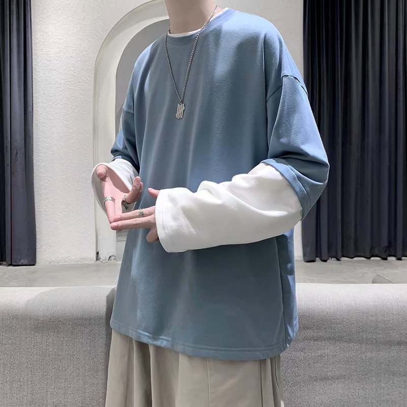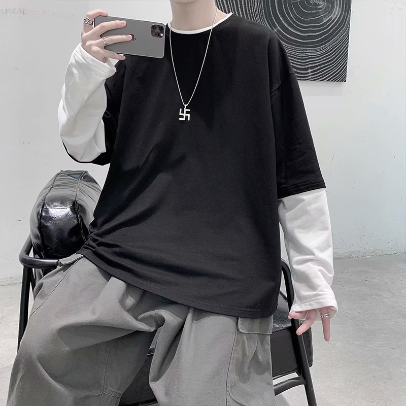 Главная страница > Дизайнерская мужская футболка с длинными рукавами и цветовым сочетанием, модная мужская свободная футболка с двойным воротником и длинными рукавами на весну и осень.