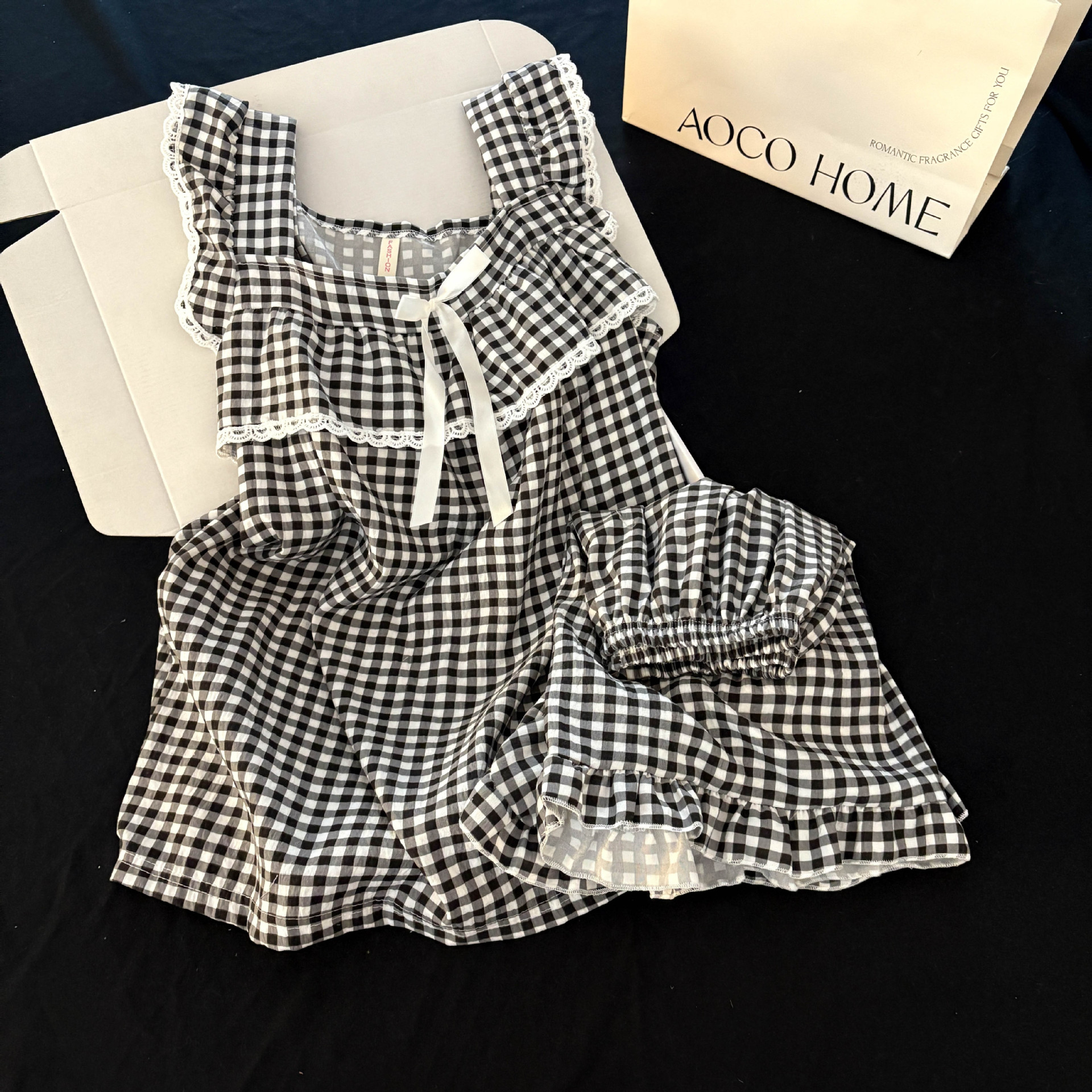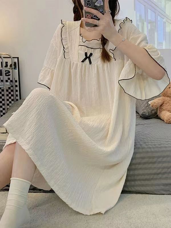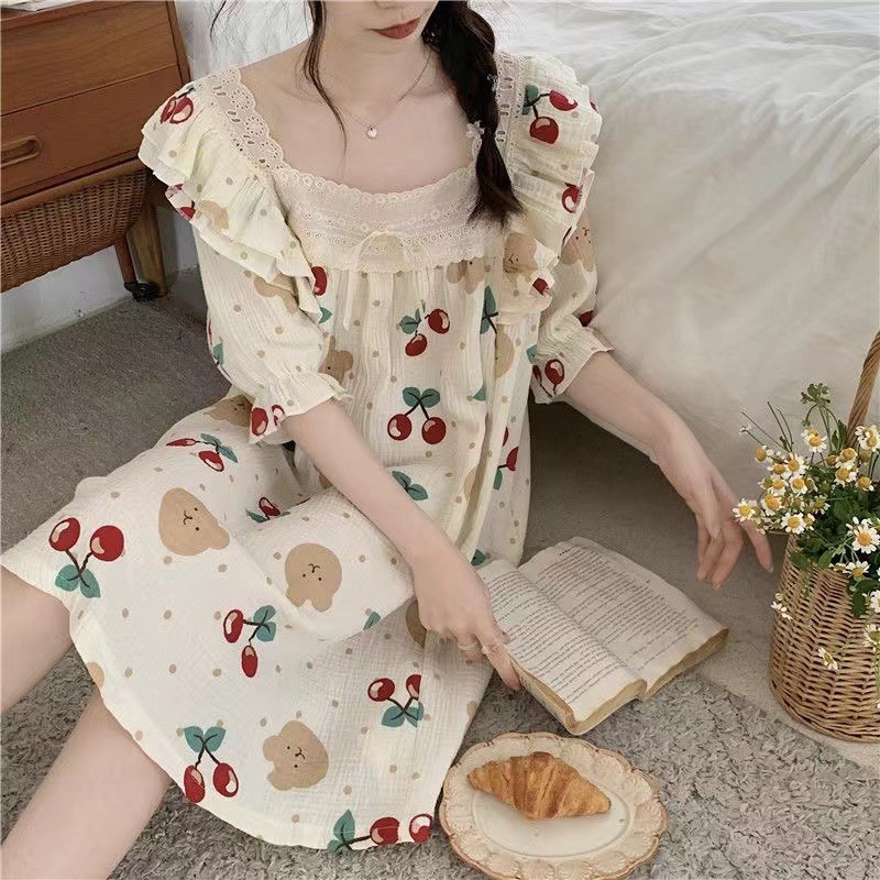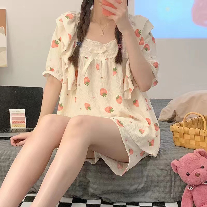 Квадратный воротник Strawberry NightDress (пузырьковая ночная рубашка из хлопка)
