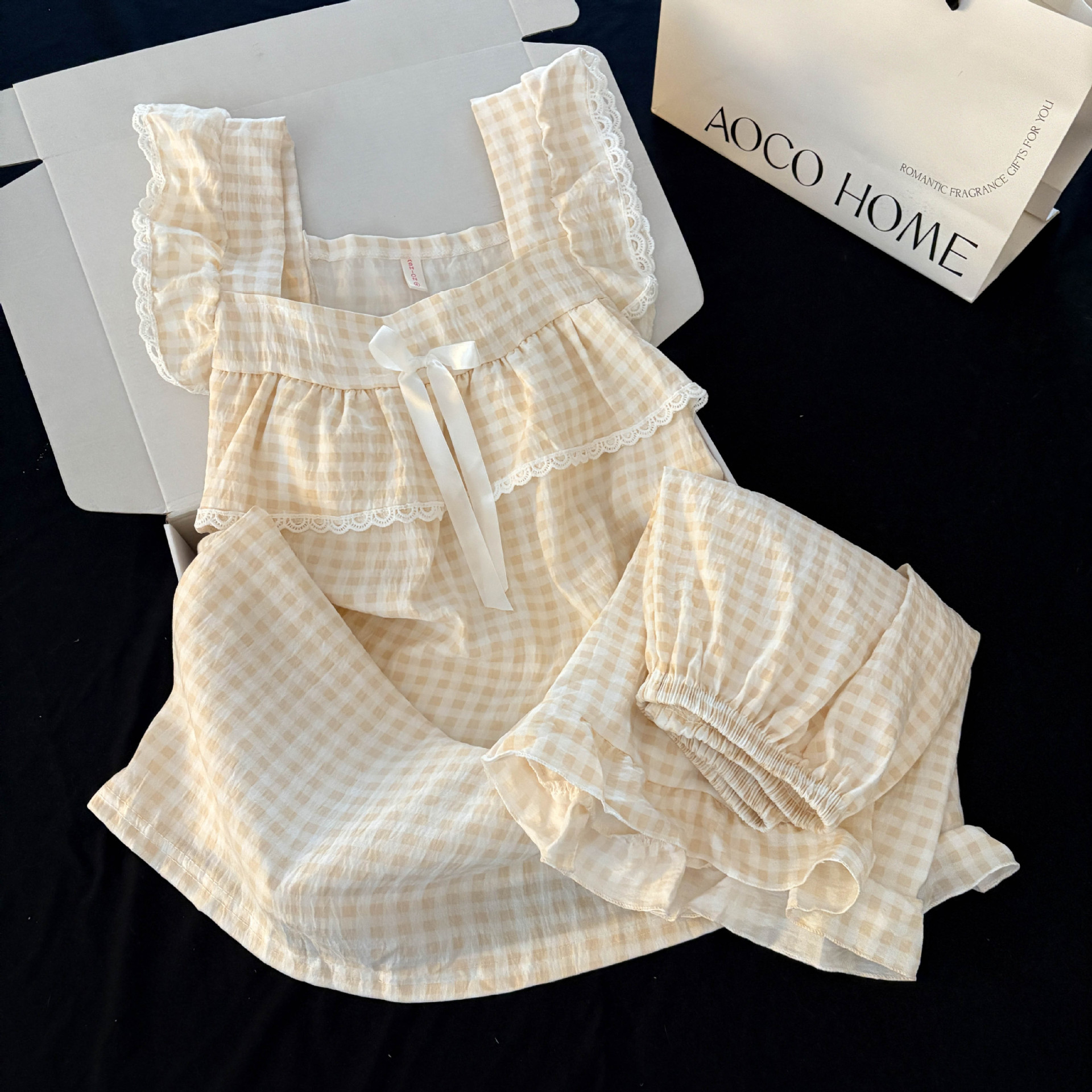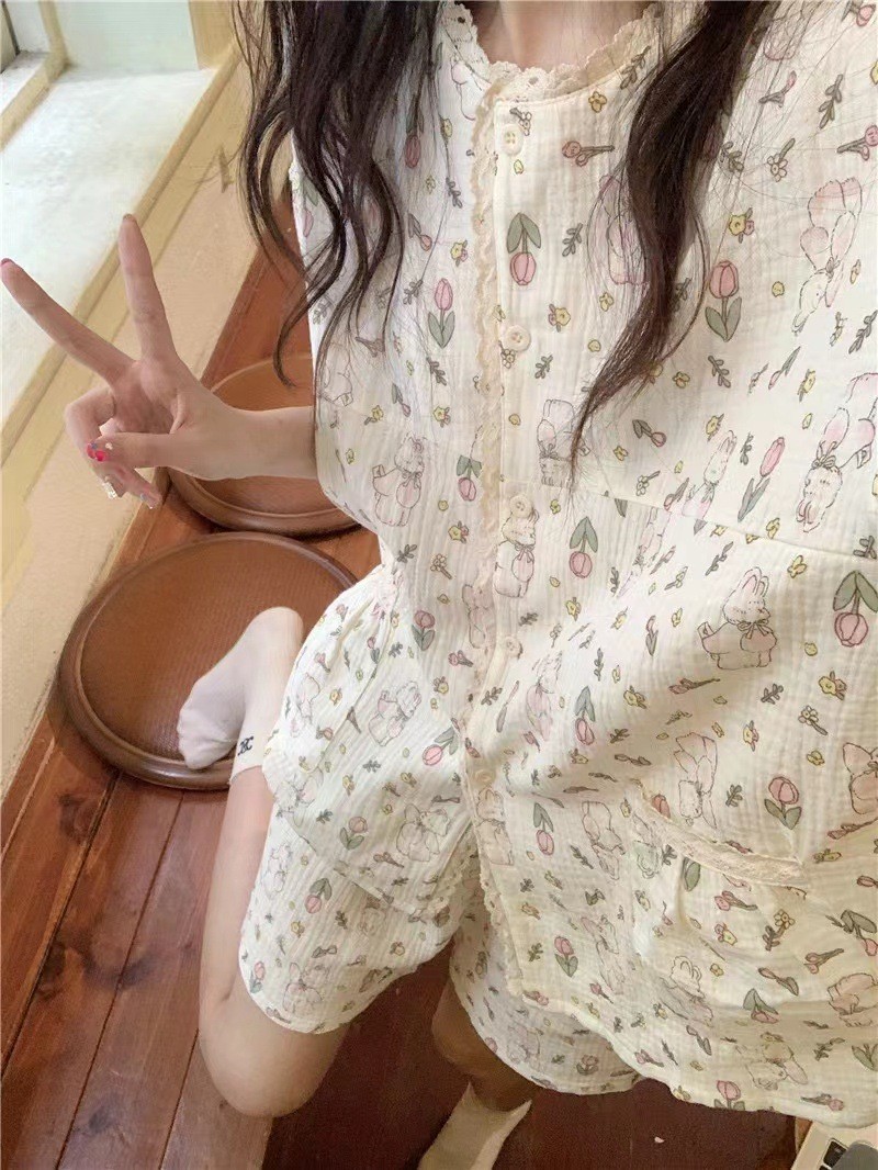 Главная страница > Милая Девушка Лето ленивый стиль пижамы женские с коротким рукавом Матча зеленый милый молочный шелк домашнюю одежду можно носить за пределами осени