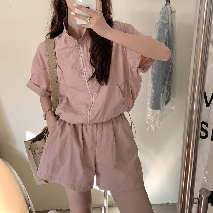 Главная страница > Повседневный спортивный костюм для женщин, лето 209, новинка, высококачественная свободная розовая солнцезащитная одежда, легкие шорты, комплект из двух предметов