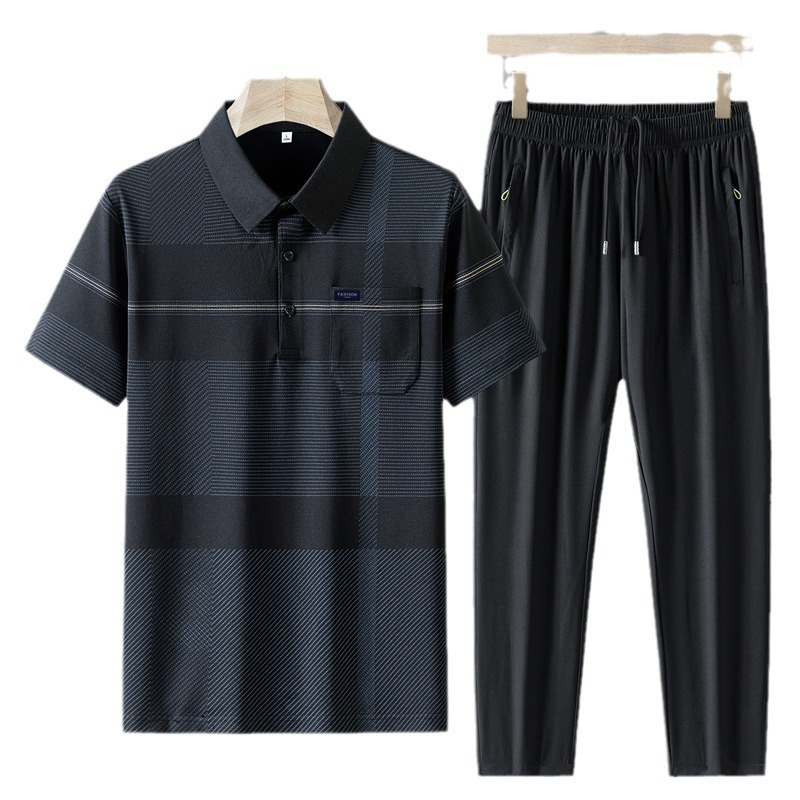 Diyu Shenlong спортивный костюм мужской летний тонкий папа с короткими рукавами для среднего и пожилого возраста свободная повседневная одежда из ледяного шелка комплект из двух предметов