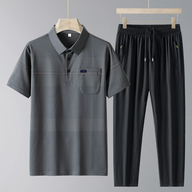 Главная страница > Diyu Shenlong спортивный костюм мужской летний тонкий папа с короткими рукавами для среднего и пожилого возраста свободная повседневная одежда из ледяного шелка комплект из двух предметов