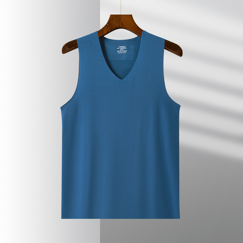 Бесшовный жилет из ледяного шелка, мужская летняя Молодежная Спортивная футболка без рукавов, быстросохнущая толстовка с V-образным вырезом и низом, тонкая эластичная