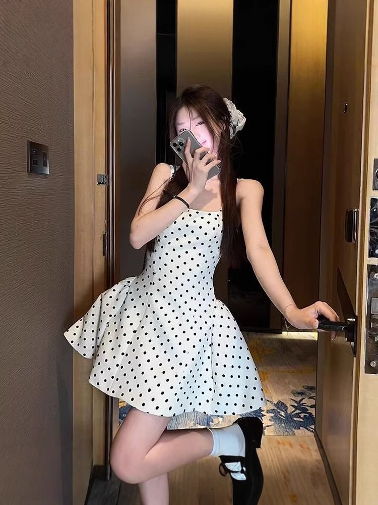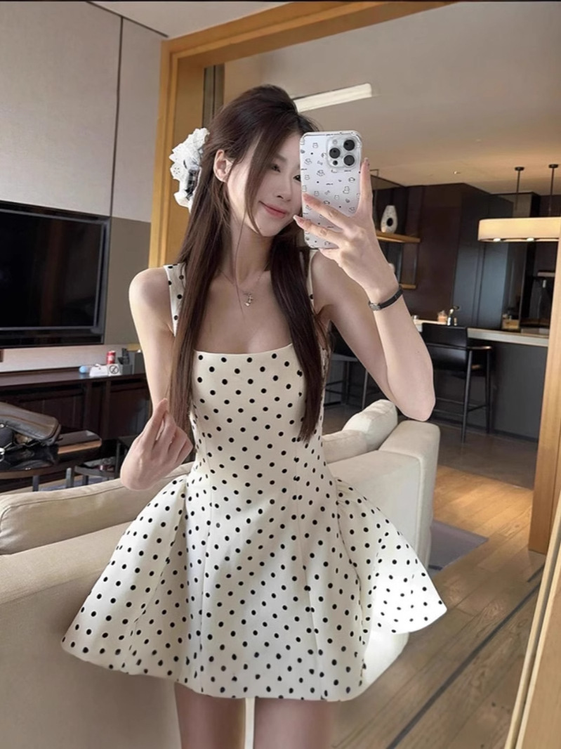 Главная страница > Двойная дорожка Yu Shuxin, Jiang Mu, тот же дизайн маленький человек, белое платье с точечным верхом, пушистая короткая юбка для женщин
