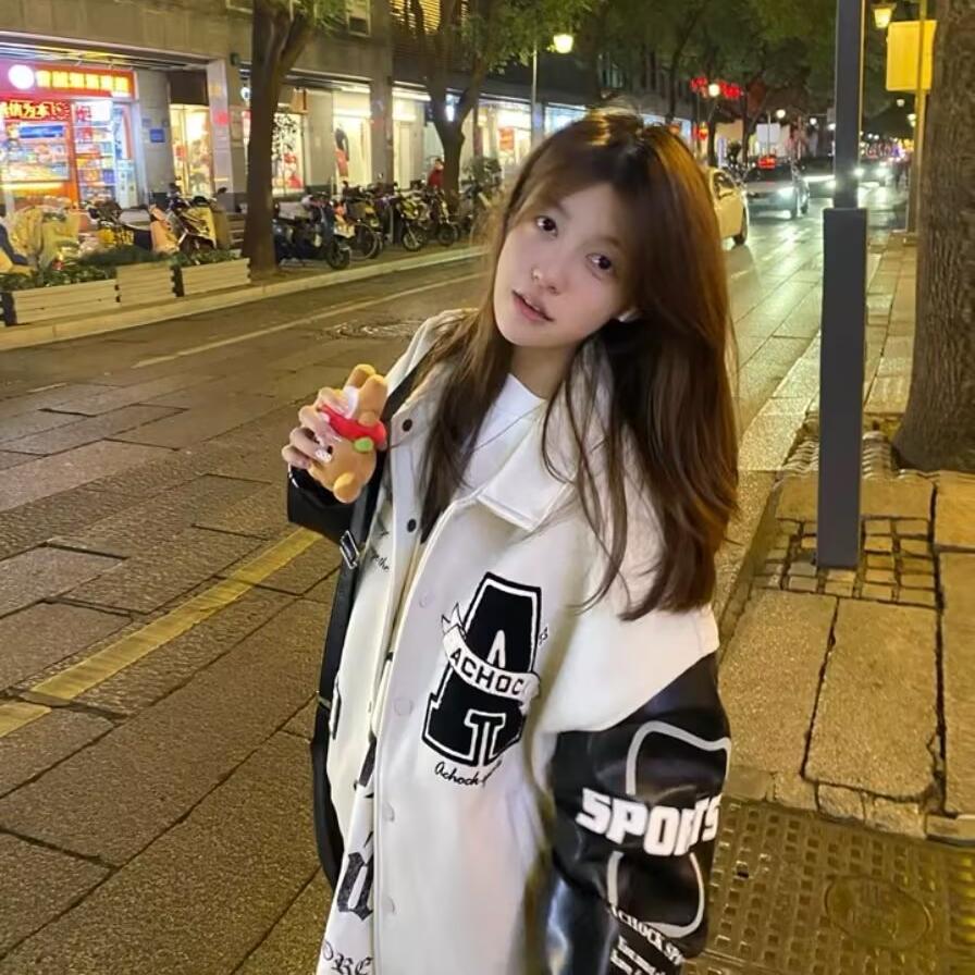Главная страница > Американский ретро бейсбольный костюм куртка женский весенний новый лацканы с вышивкой пара воротник куртка свободного сшивания топ