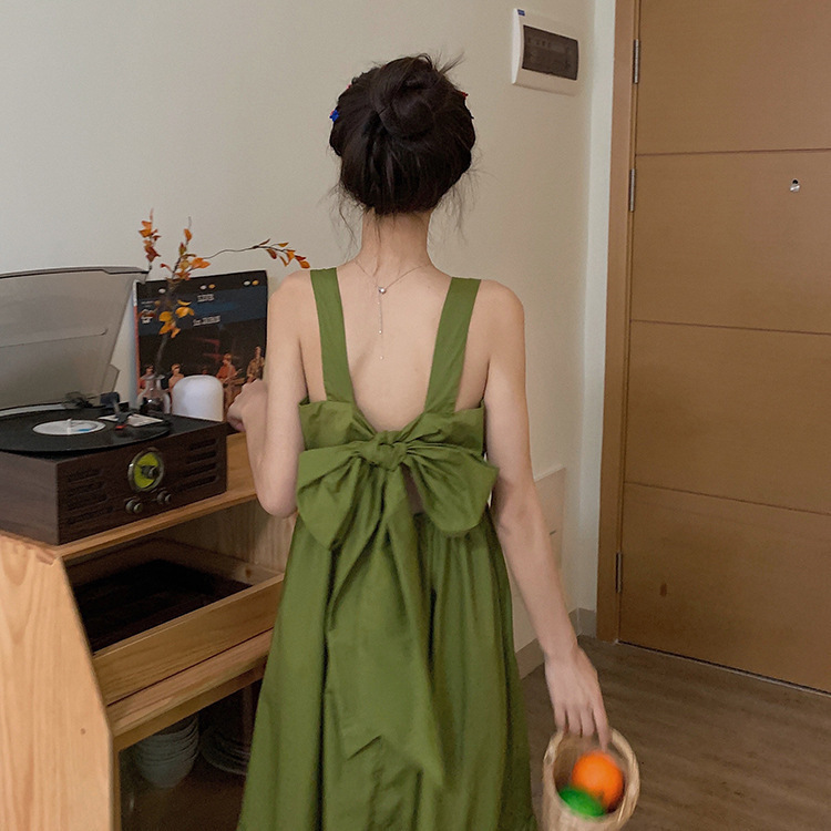 2025 Супер сказочный маленький свежий авокадо зеленое платье с подтяжками женское лето сладкое зеленое платье с открытой спиной