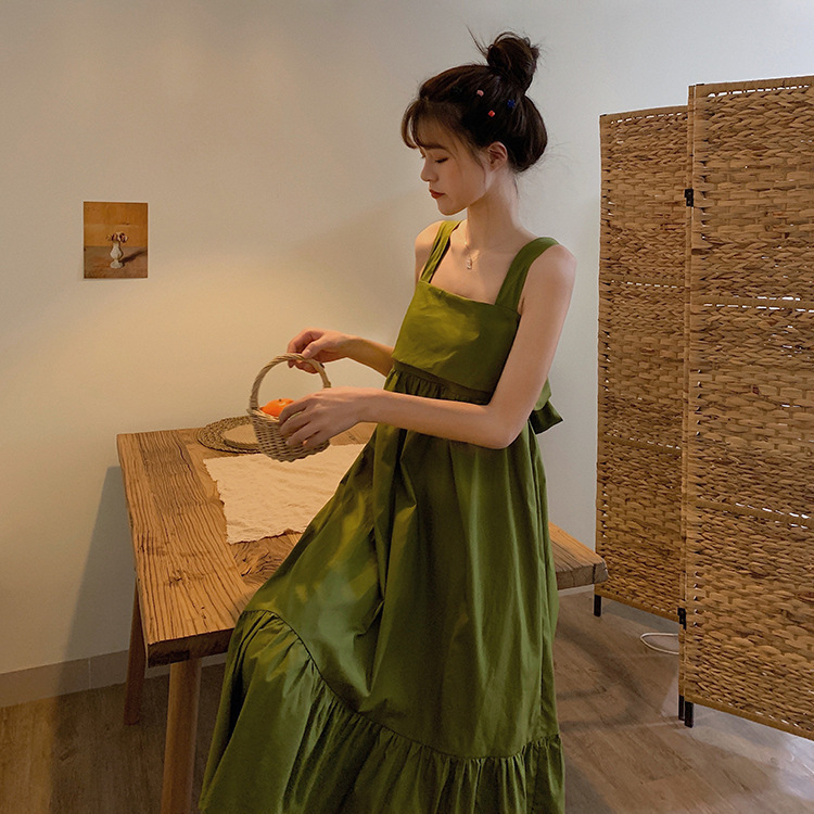 Главная страница > 2025 Супер сказочный маленький свежий авокадо зеленое платье с подтяжками женское лето сладкое зеленое платье с открытой спиной