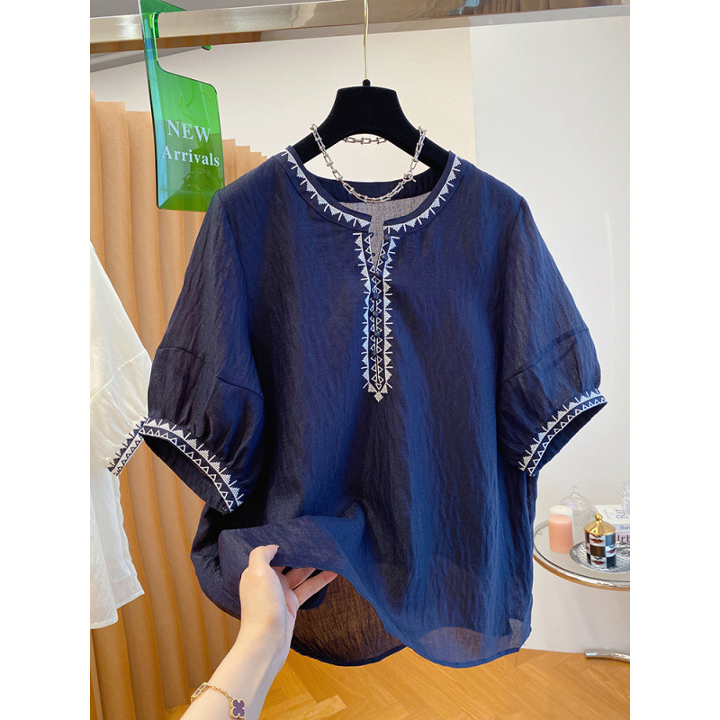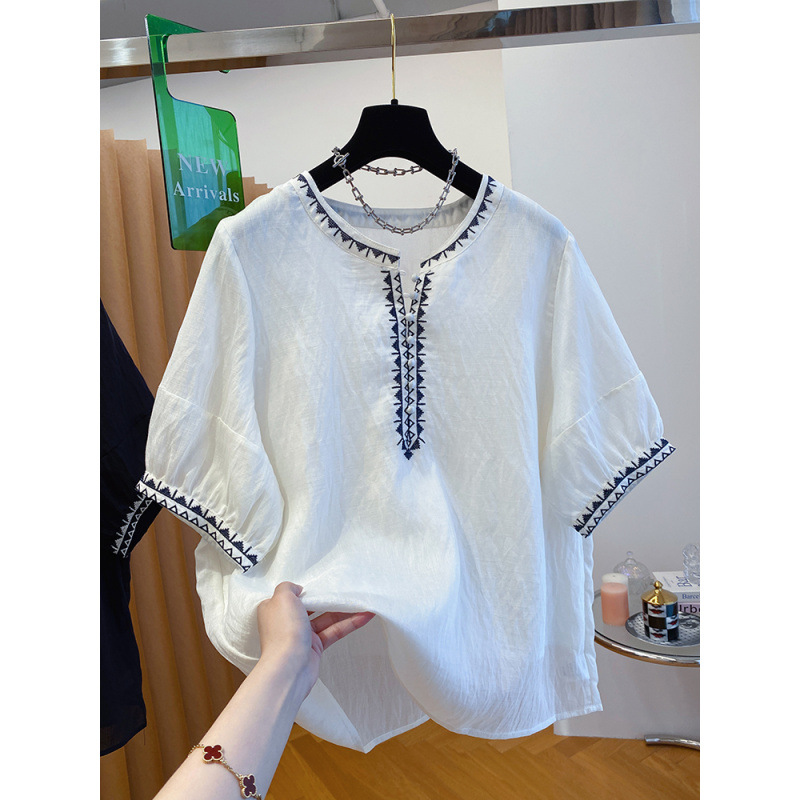Главная страница > Богемная рубашка с вышивкой в этническом стиле, женская свободная тонкая рубашка с короткими рукавами и круглым вырезом, летний топ из тенселя в стиле бебидолл