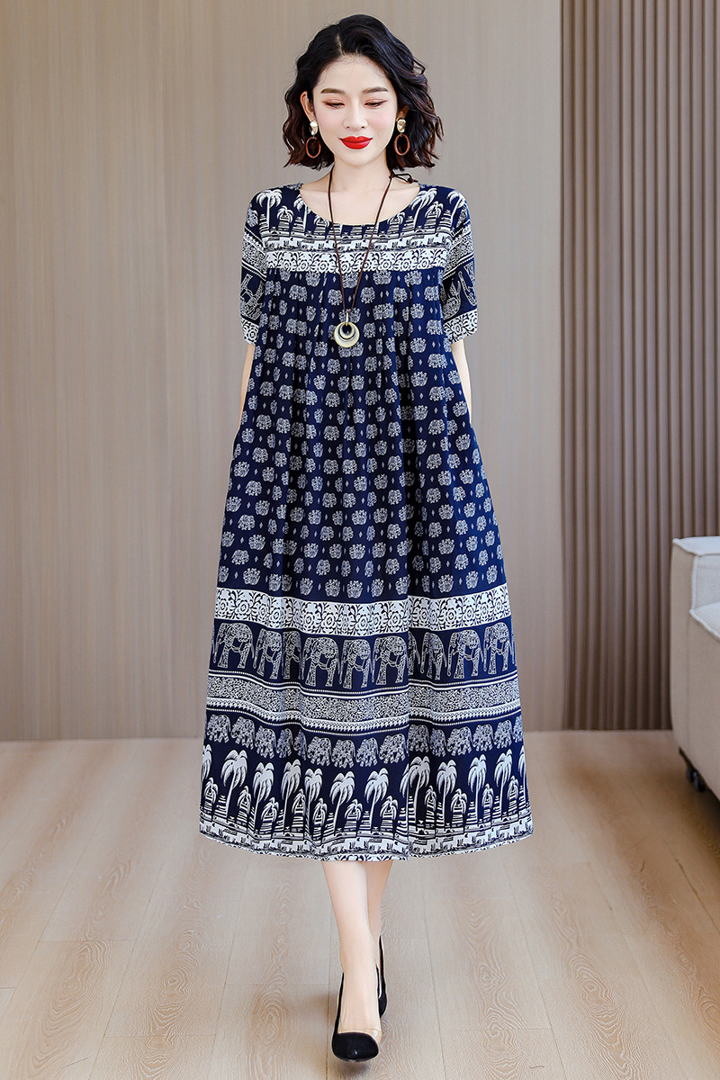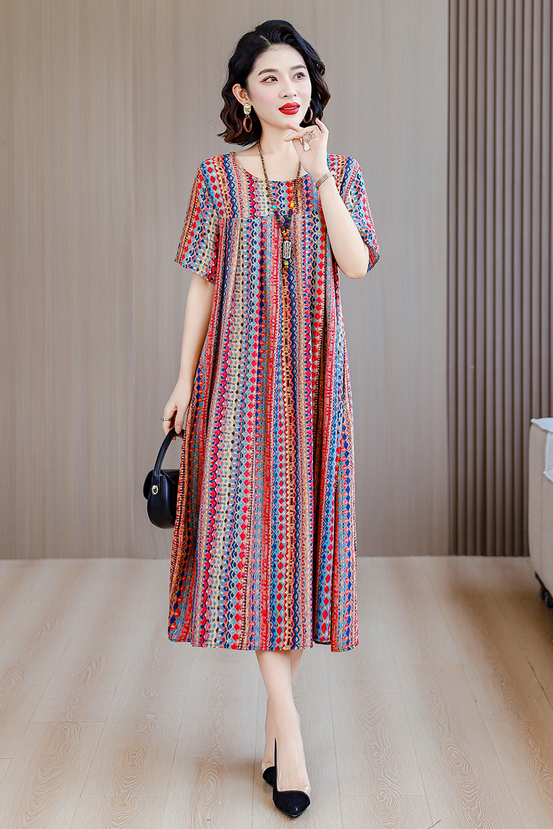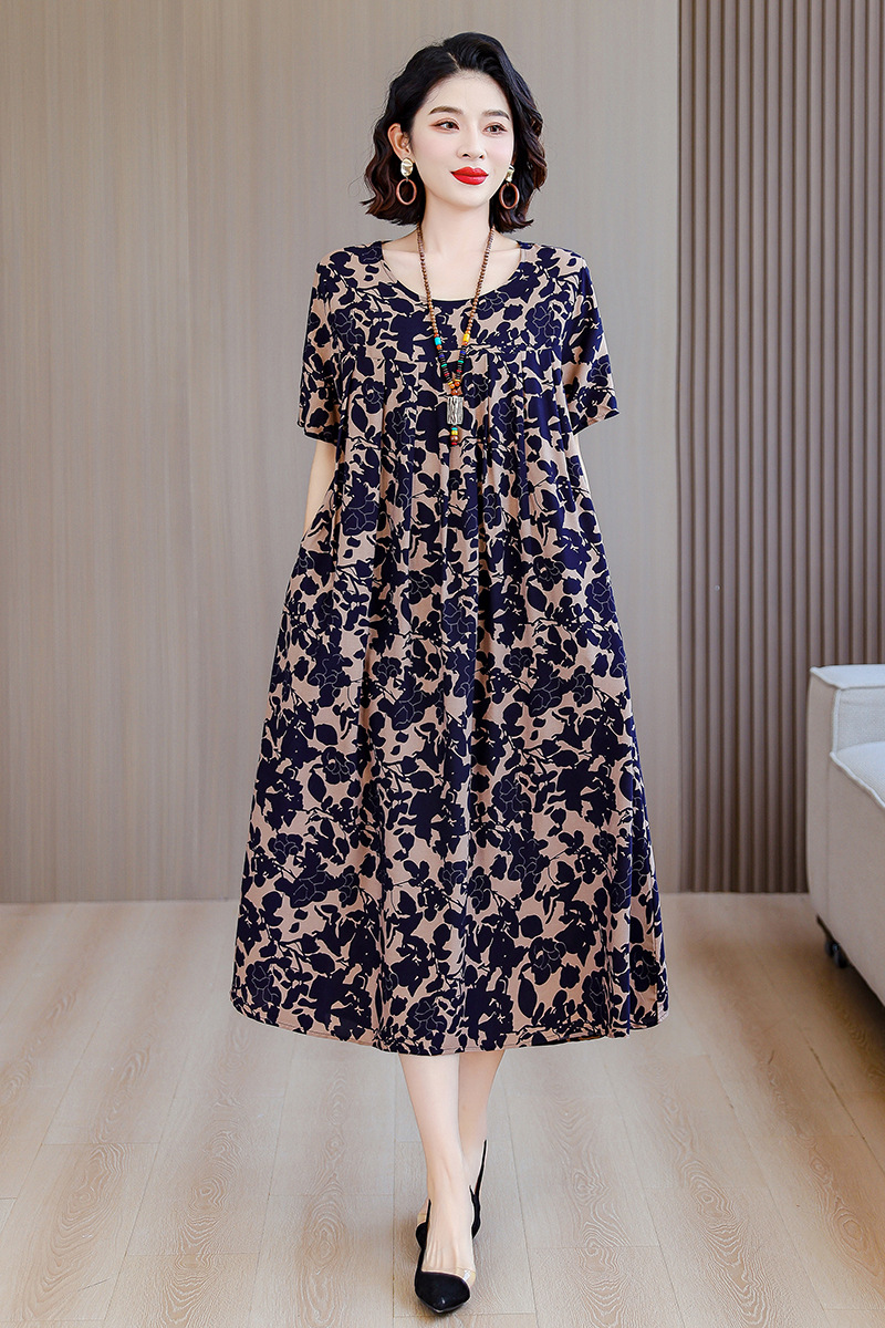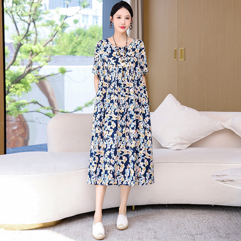 Женщины среднего и пожилого возраста хлопковое шелковое платье большого размера летом новая мама носит платье с принтом