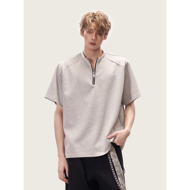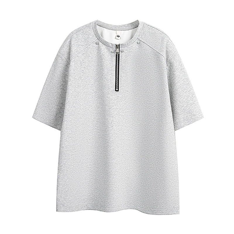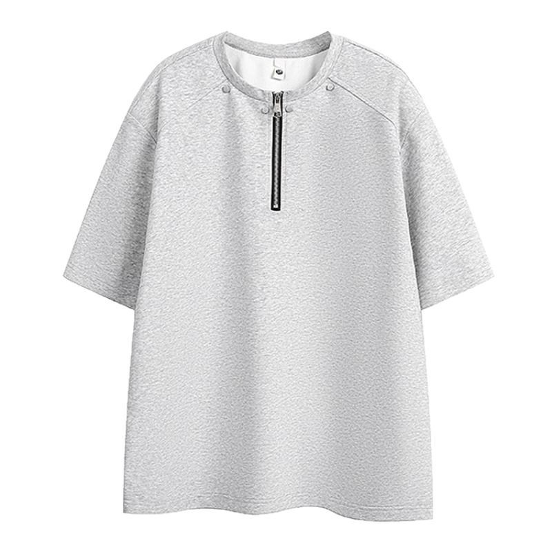 Главная страница > Футболка с коротким рукавом с полузастежкой-молнией мужская весна и лето американский cleanfit High Street тяжелый вес свободный отдых пятицентный рукав