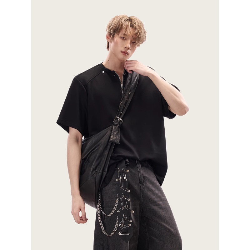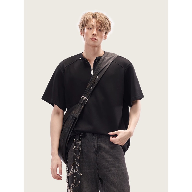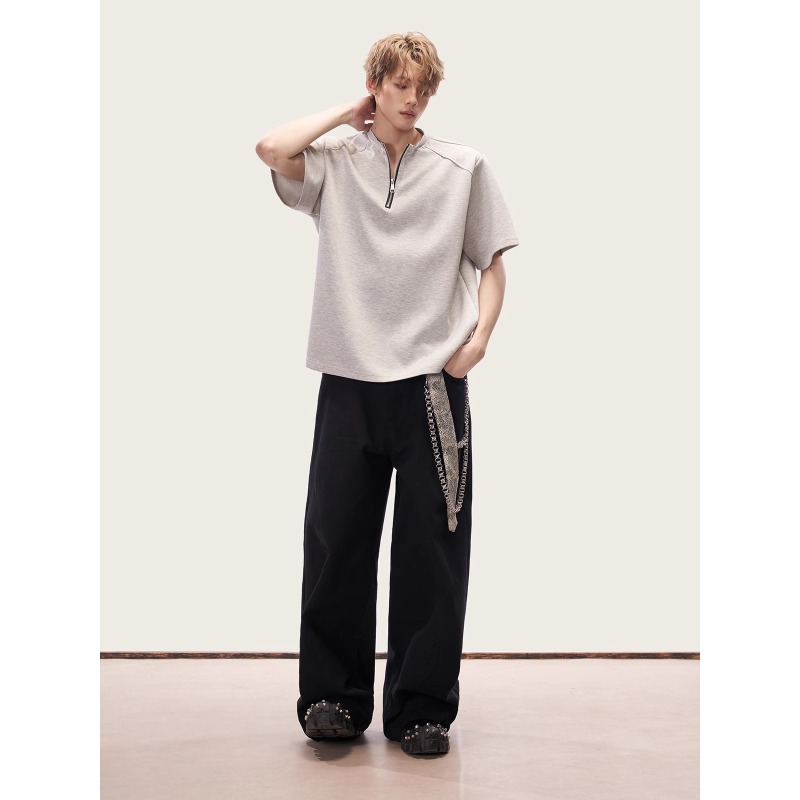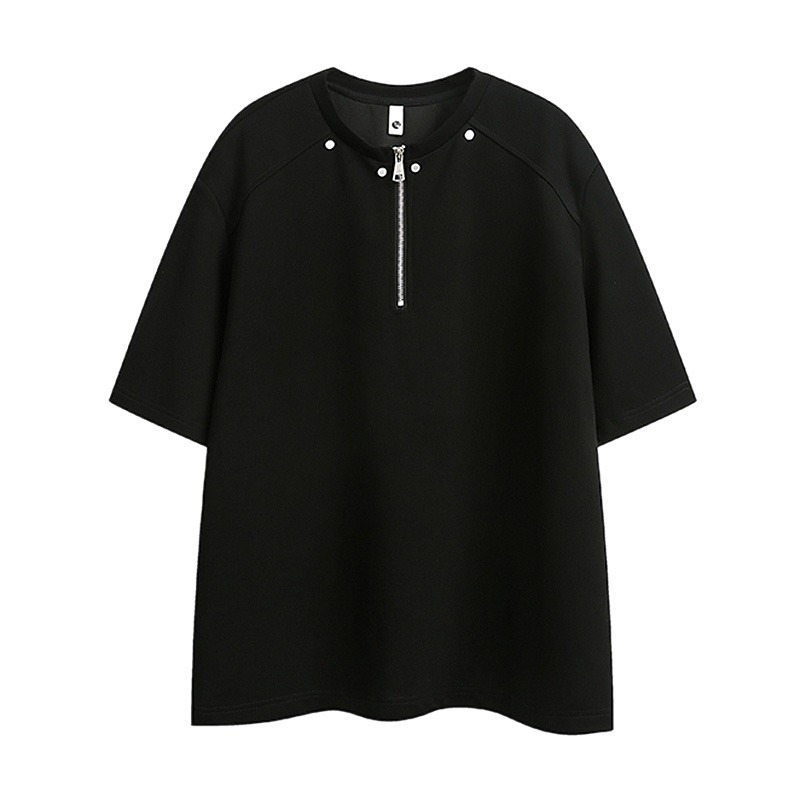 Футболка с коротким рукавом с полузастежкой-молнией мужская весна и лето американский cleanfit High Street тяжелый вес свободный отдых пятицентный рукав