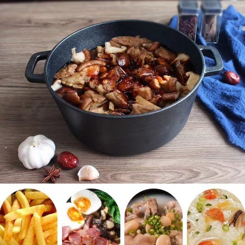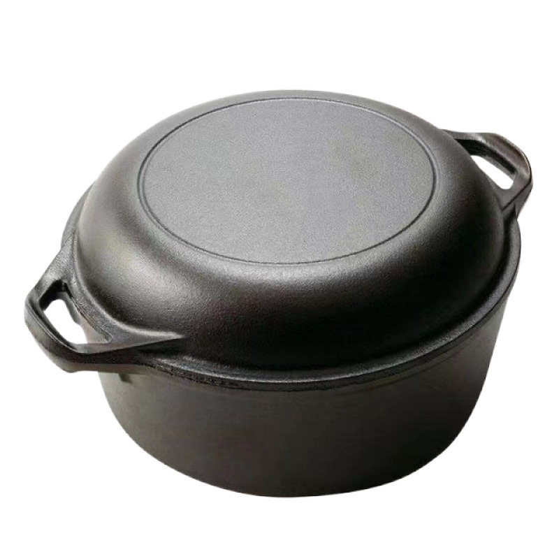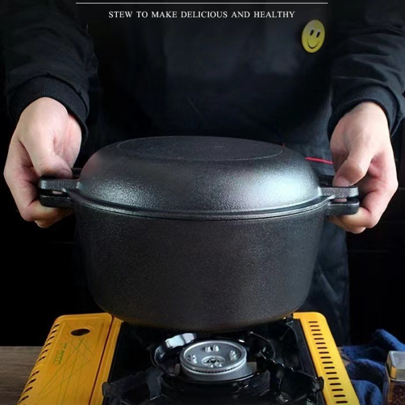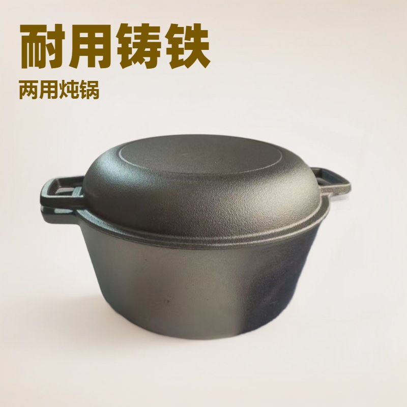 Чугунная сковорода двойного назначения 26cm Тушеная сковорода утолщенная без покрытия сковорода Голландская кастрюля Бинауральная индукционная плита