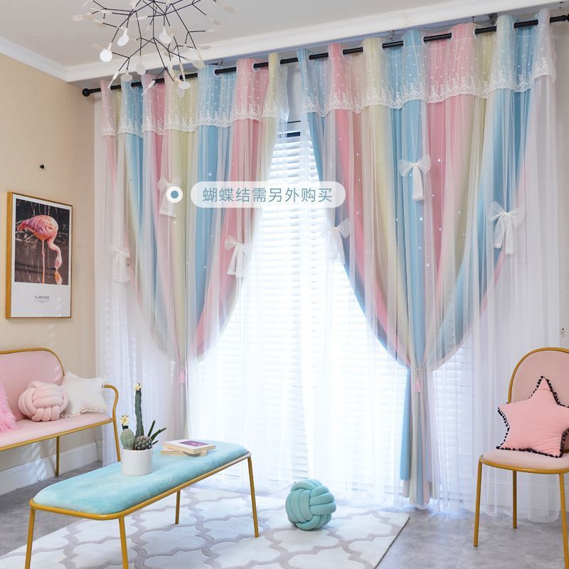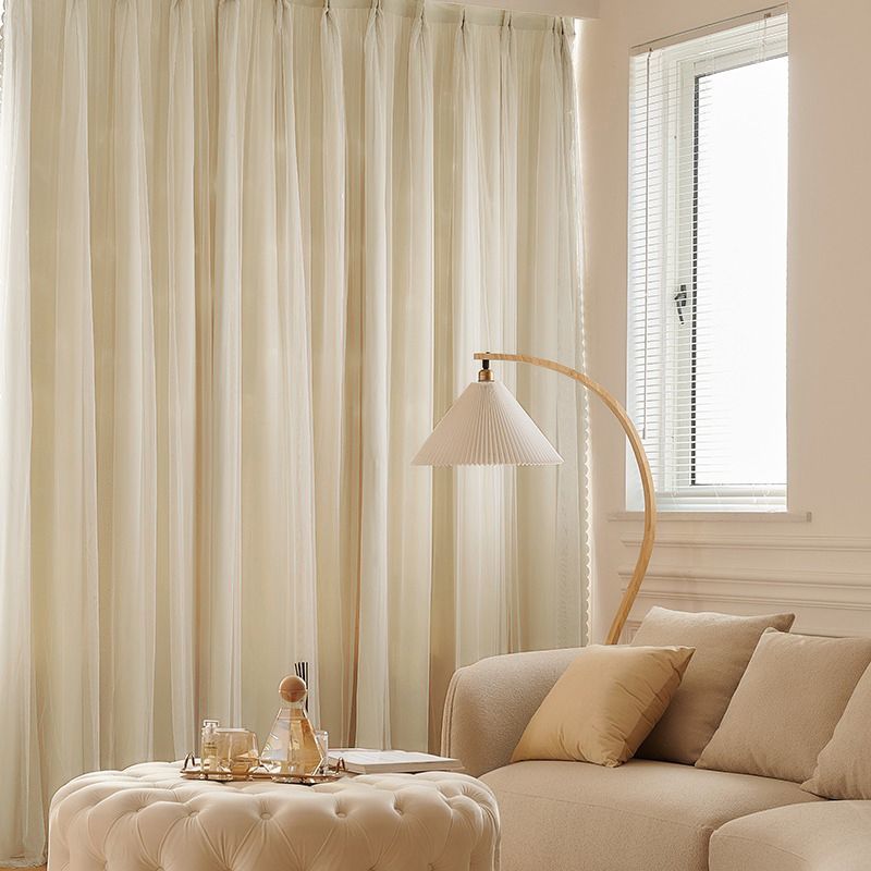 Сливочный ветер шторы затеняют бежевый девичий спальный эркер двухслойный дрожащий звук сетка красная принцесса ветер фэнтези ткань