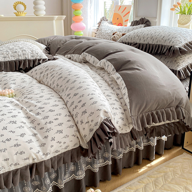 Класс A трикотажная двухслойная пряжа из хлопчатобумажных одеял набор из четырех частей 2025 новая юбка кружева чехол из трех частей 3