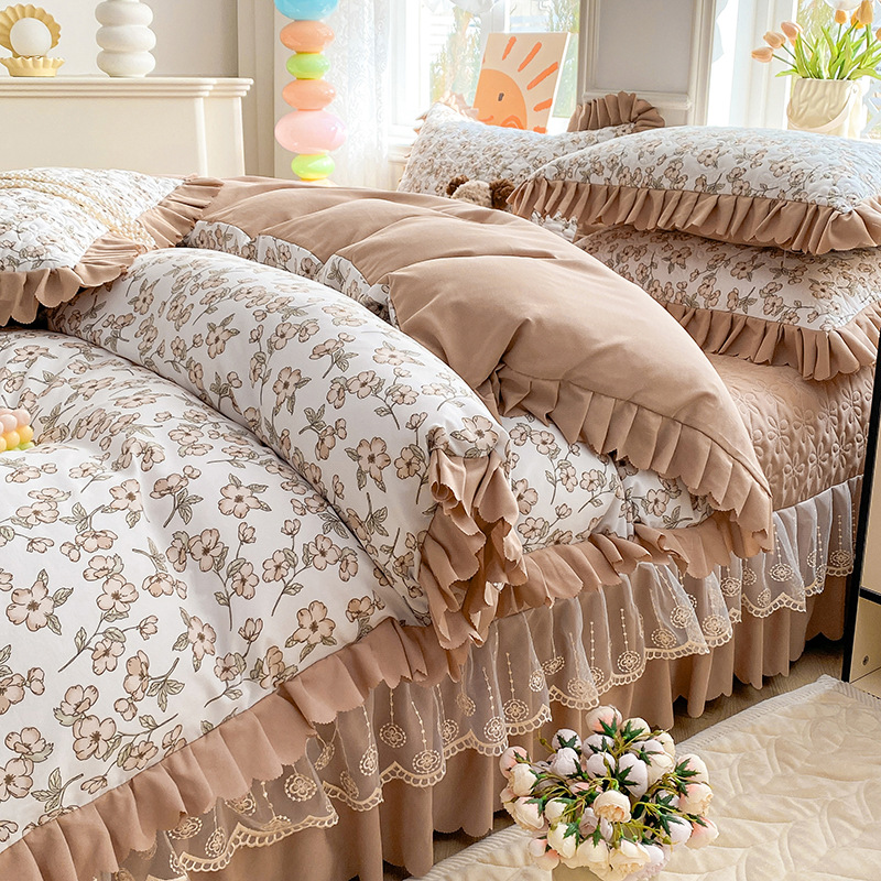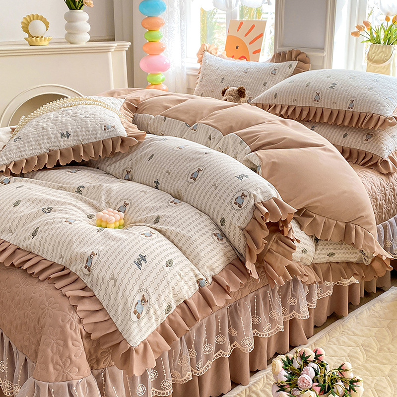 Главная страница > Класс A трикотажная двухслойная пряжа из хлопчатобумажных одеял набор из четырех частей 2025 новая юбка кружева чехол из трех частей 3