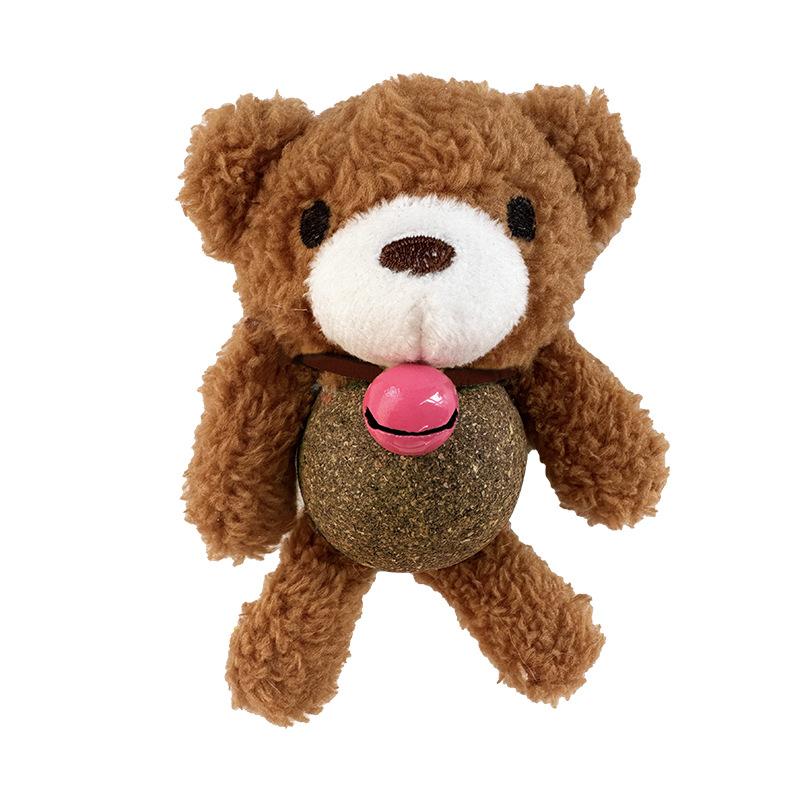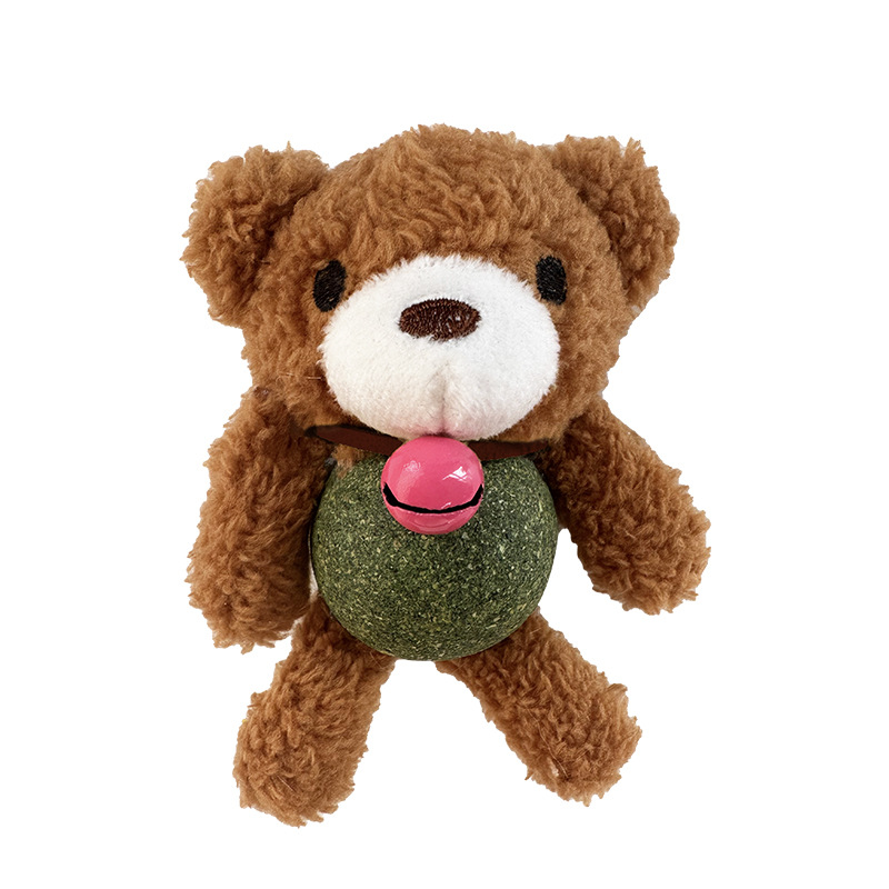 Плюшевый мишка с шариком кошачьей мяты (случайный цвет колокольчика)