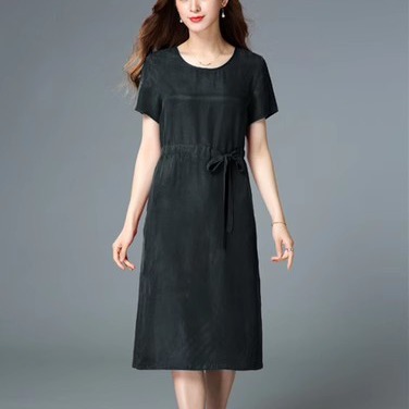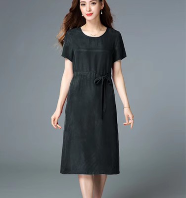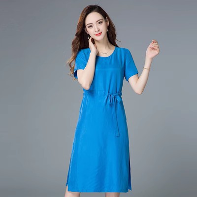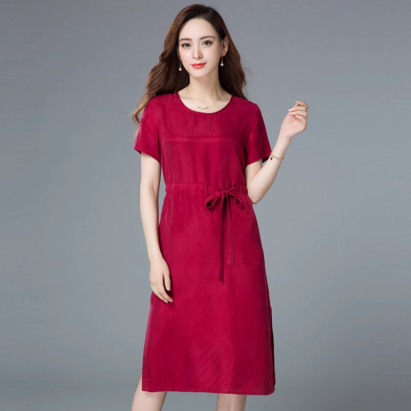 Главная страница > Свободное Тяжелое медное аммиачное шелковое платье с узкой талией женское 2023 летнее Новое шелковое платье с коротким рукавом больших размеров, однотонное платье с темпераментом