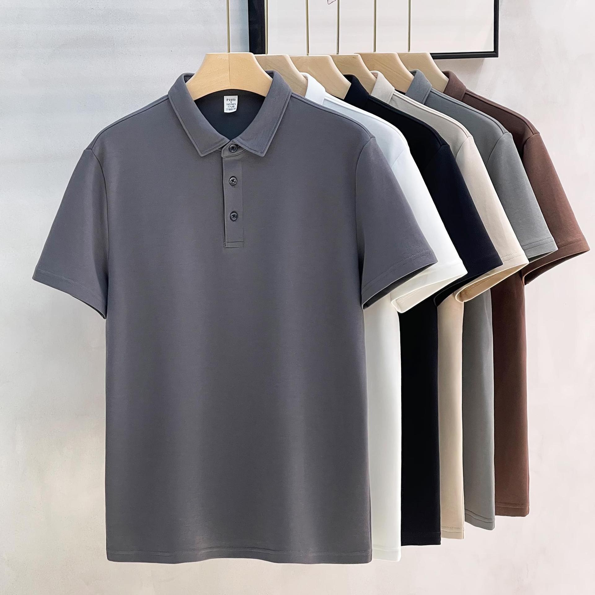 Главная страница > Тяжелый хлопок сплошной цвет рубашка POLO с лацканным воротником легкая деловая футболка с короткими рукавами для пригородных мужских весенних и летних рубашек
