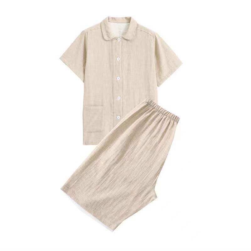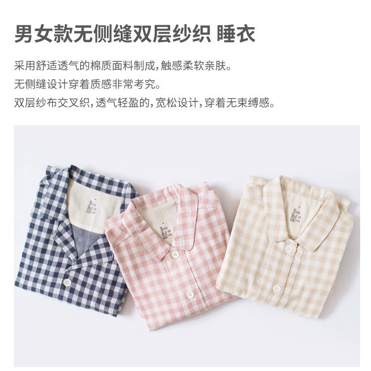 Главная страница > Muji женские летние двухслойные пижамы из чистого хлопка с короткими рукавами, летние тонкие пижамы для пар, которые можно носить вне хорошего комплекта домашней одежды
