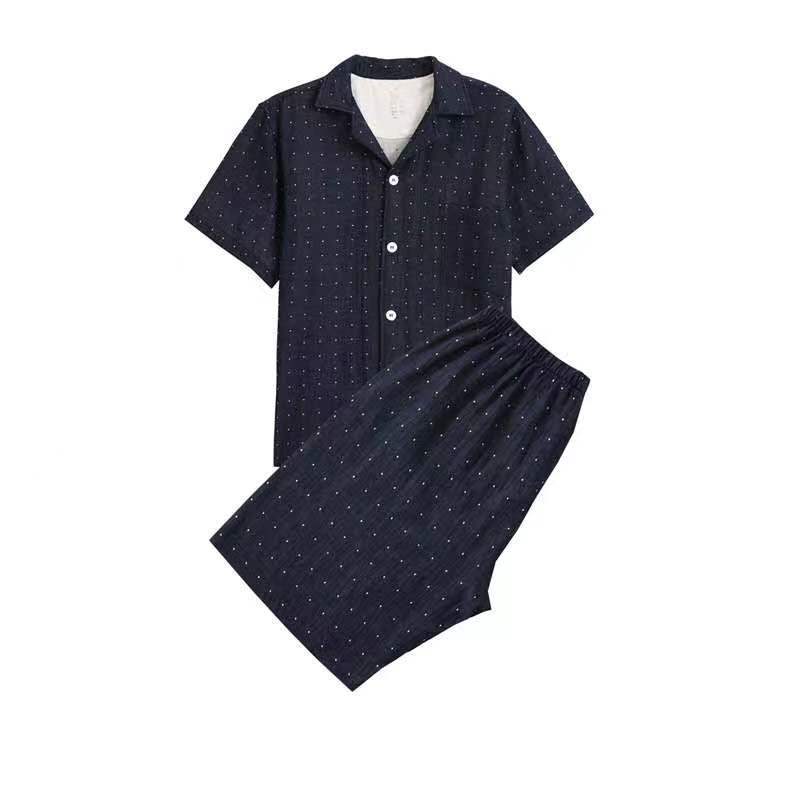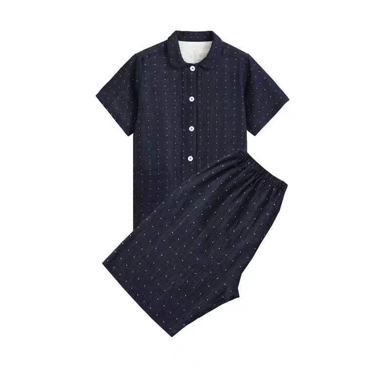 [Двухслойные марлевые короткие рукава + шорты] Темно-синие горошки - мужской стиль