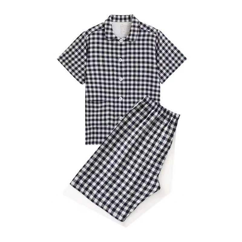 [Двухслойные марлевые короткие рукава + шорты] Бежевый клетчатый женский стиль