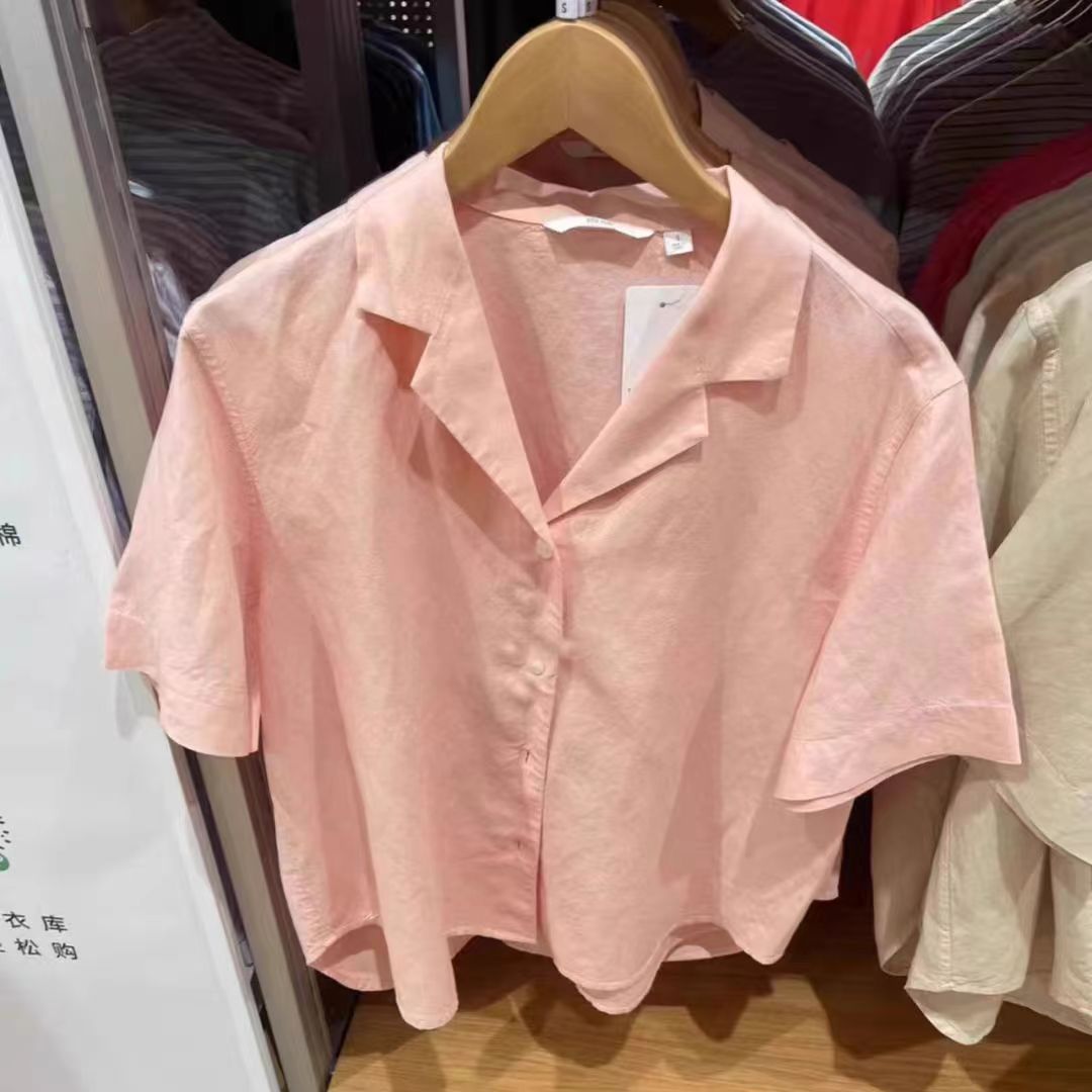 Главная страница > 2024, новая летняя женская льняная рубашка с открытым воротником, повседневная универсальная рубашка с короткими рукавами G464739