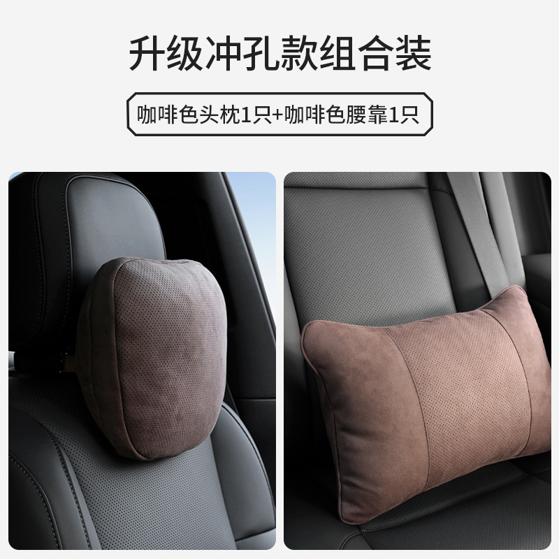 Новая модель - 1 перфорированный подголовник + 1 поясничная опора с отверстием (коричневый)