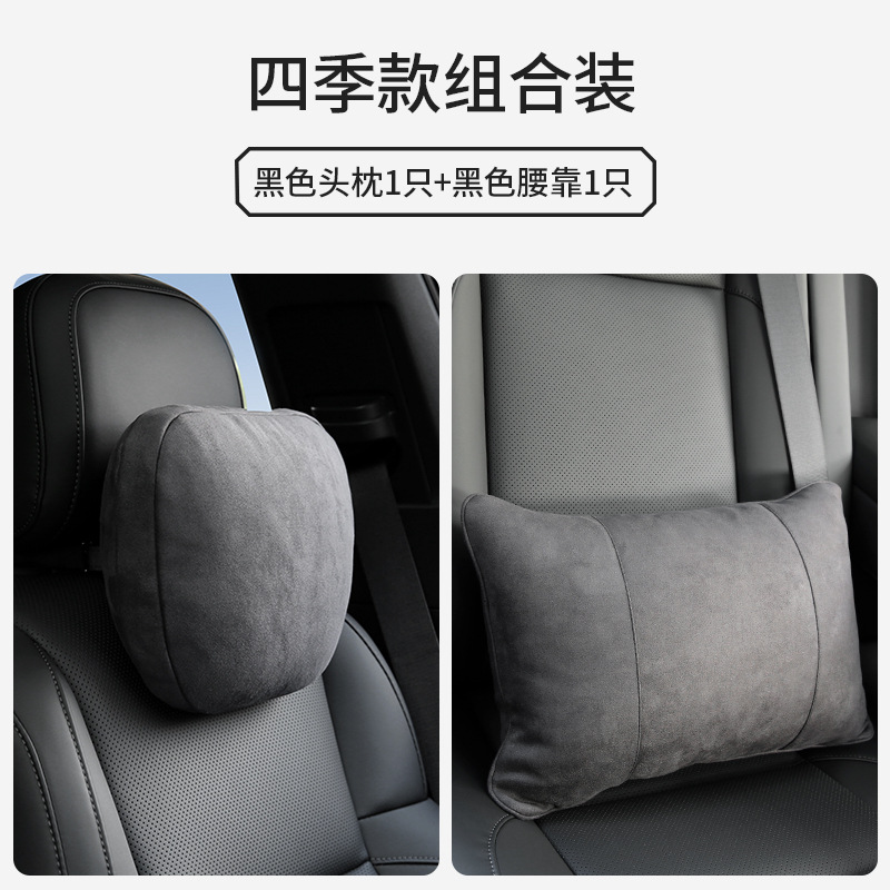 Удобный одинарный подголовник + одинарная поясничная опора: черный