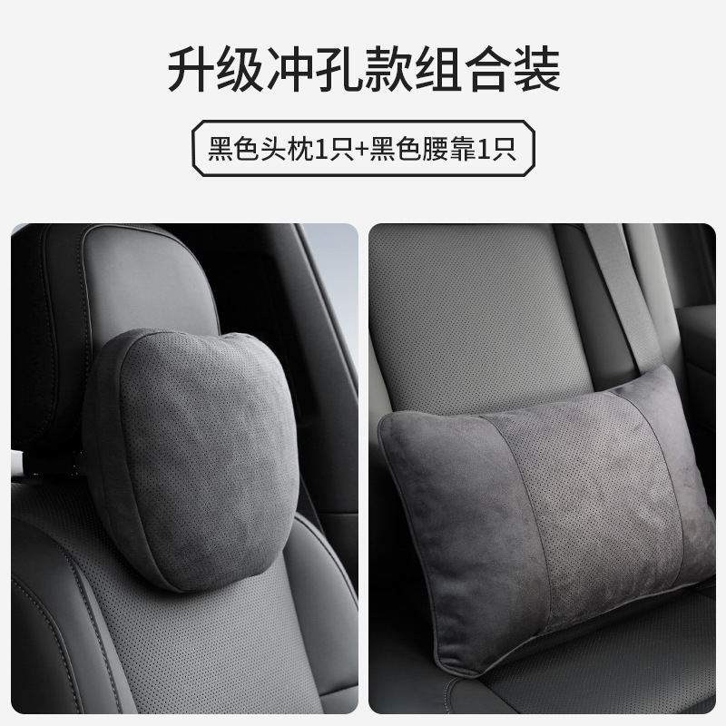 Новая модель - 1 перфорированный подголовник + 1 поясной упор с отверстием (черный)
