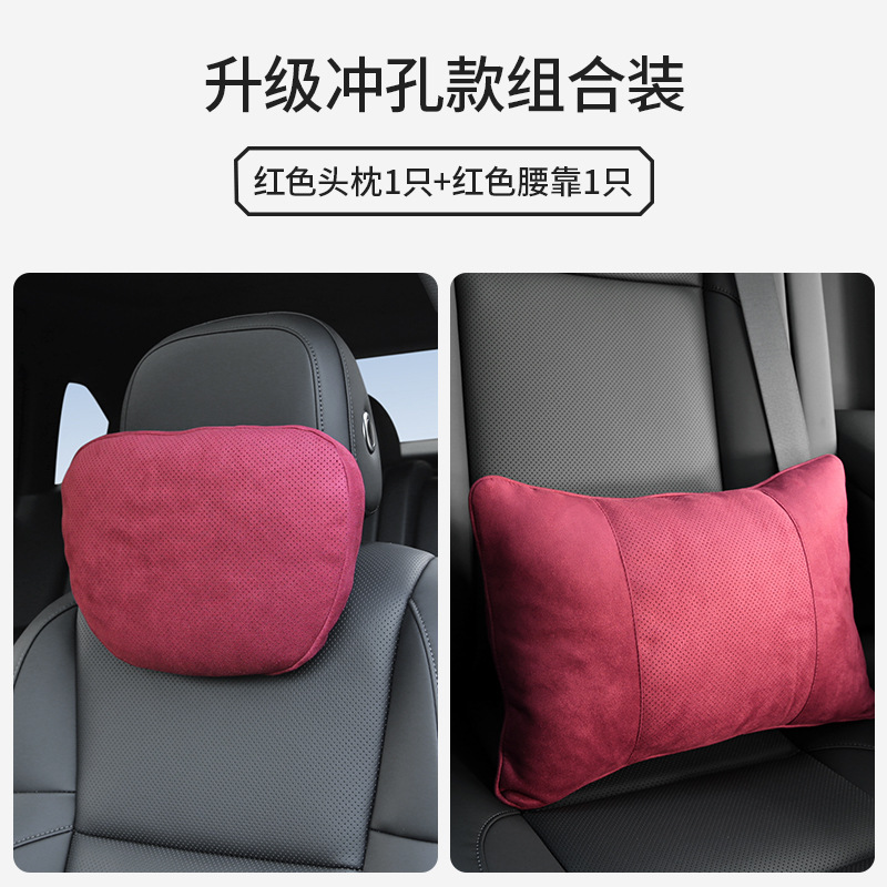Новая модель - 1 перфорированный подголовник + 1 поясничная опора с отверстием (красный)