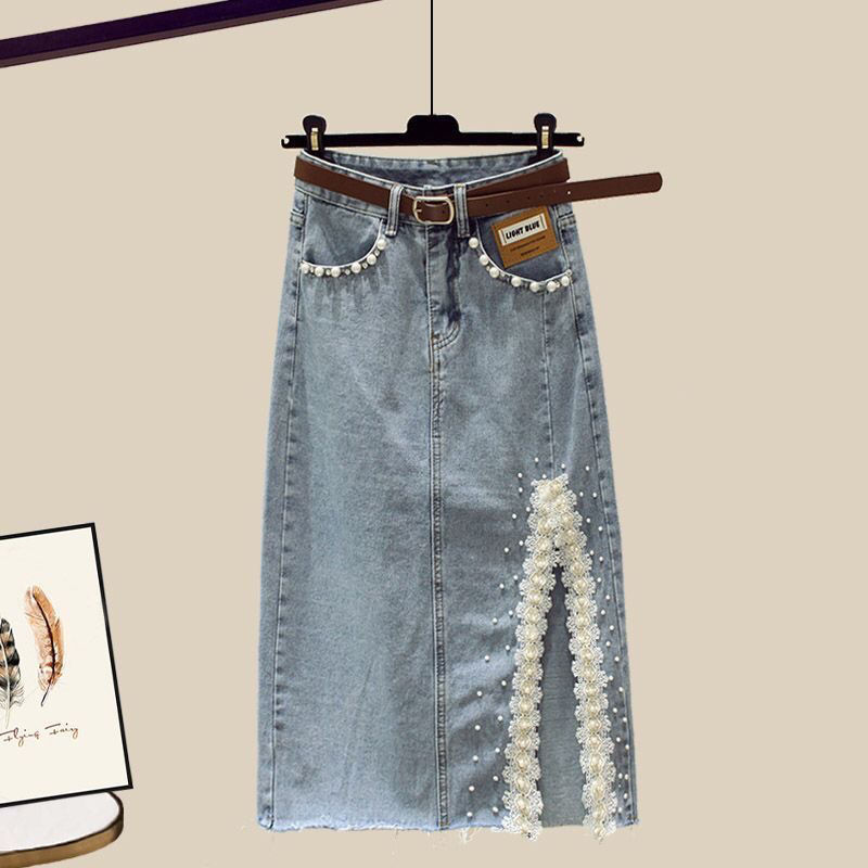 Джинсовая юбка + белые короткие рукава (с поясом)