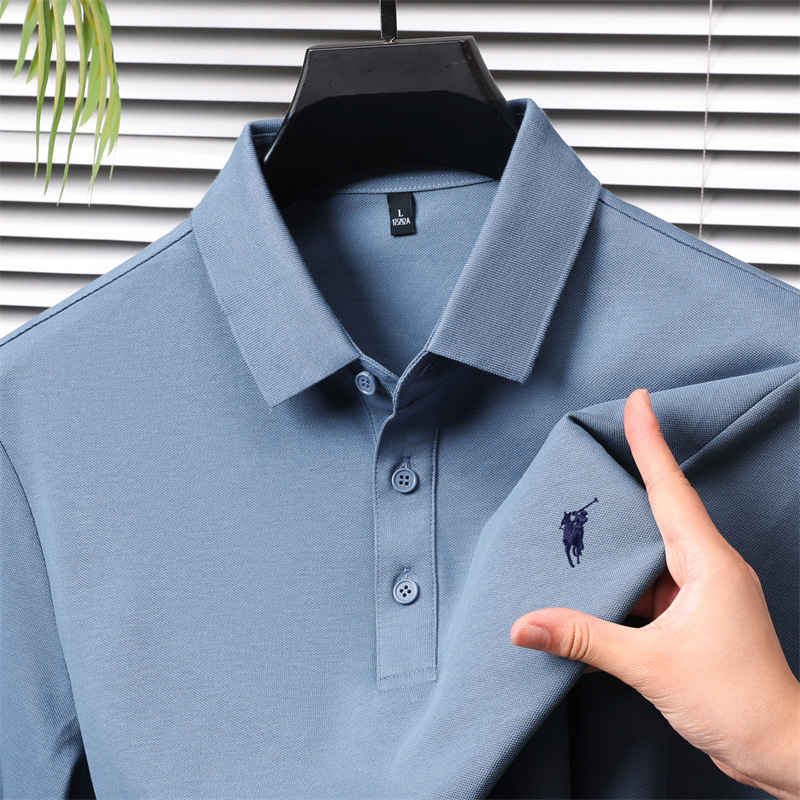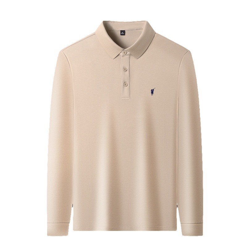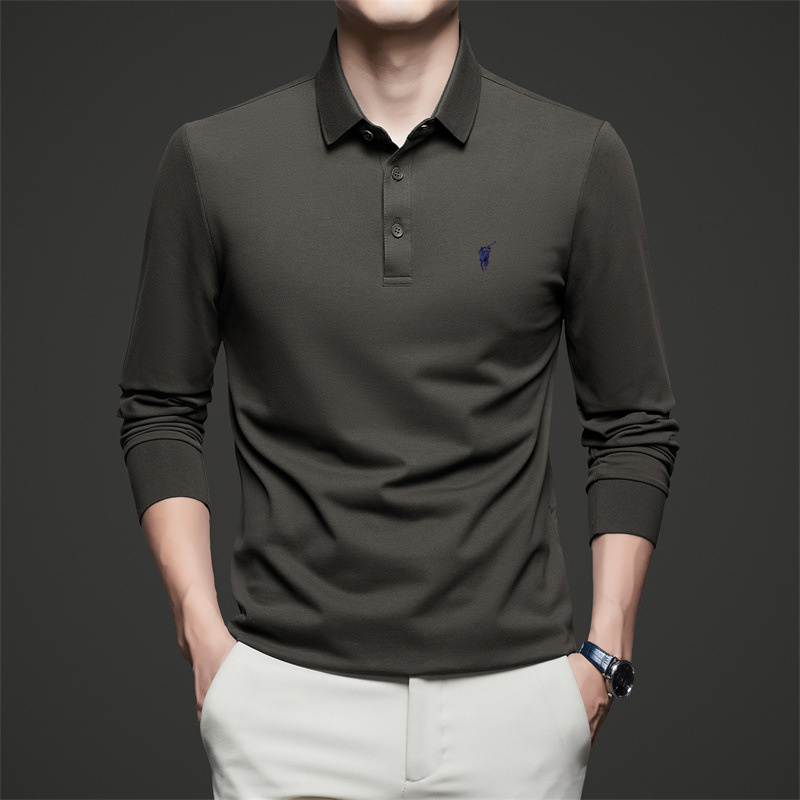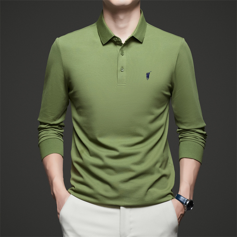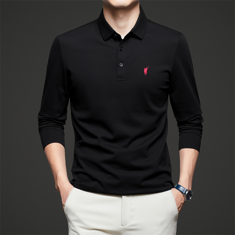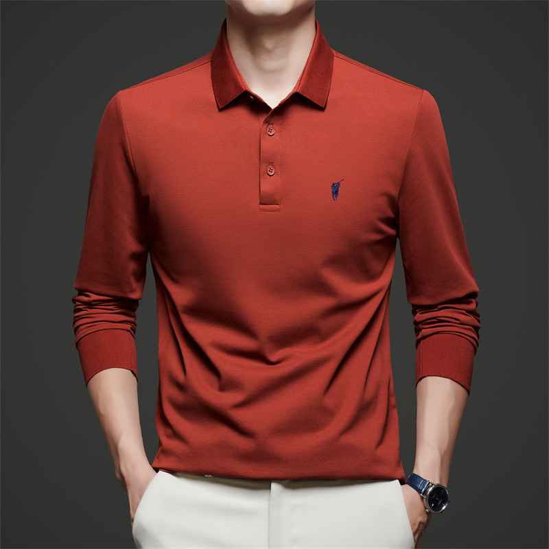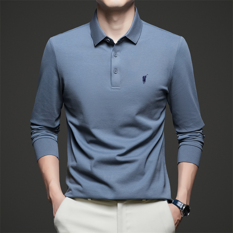 Мужская футболка с длинными рукавами лацкана среднего возраста простая повседневная мужская одежда высокого класса весна и осень новая хлопковая футболка в прямом эфире