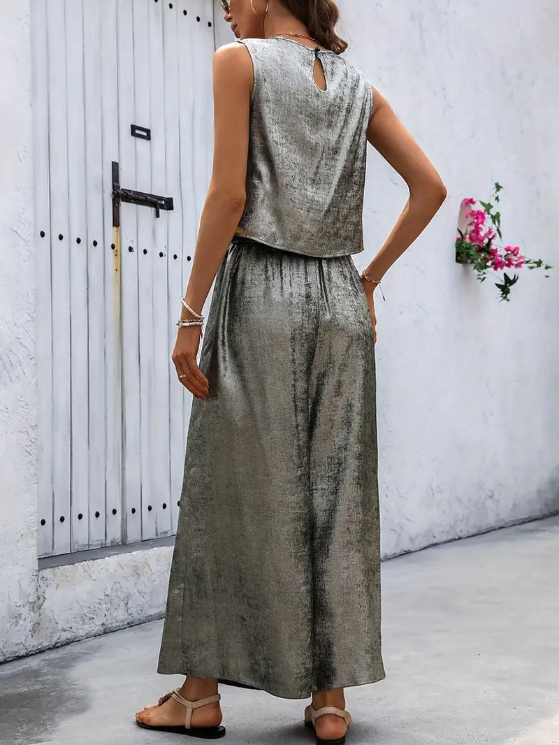 Главная страница > Европейская и американская трансграничная женская одежда амазонка женская мода повседневная сплошной топы без рукавов с короткими рукавами брюки модный набор